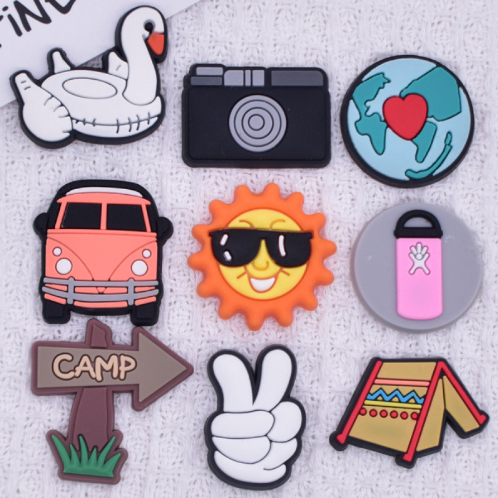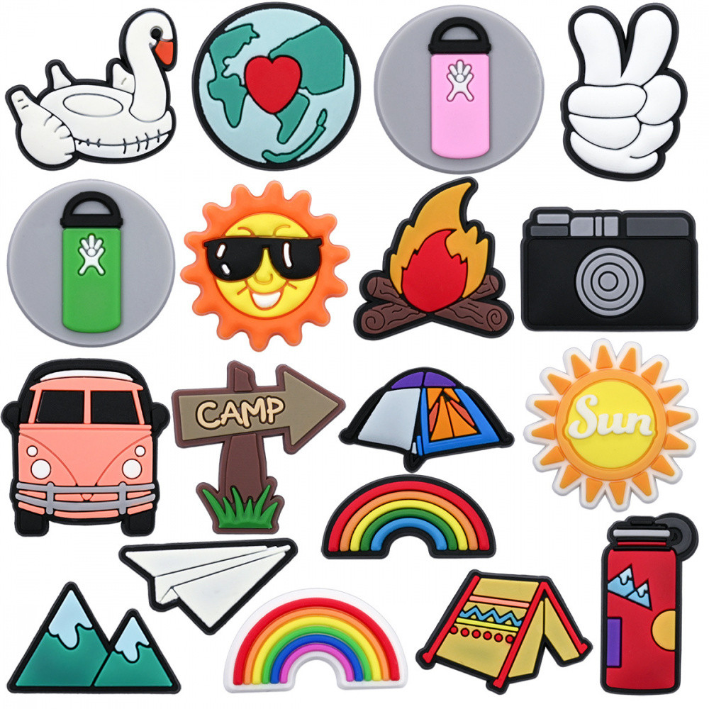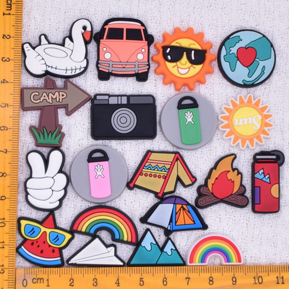 Encantos de Sapatos 18 Estilos de Decorações da Série de Camping de Desenhos Animados Acessórios de PVC com Botão e Ping