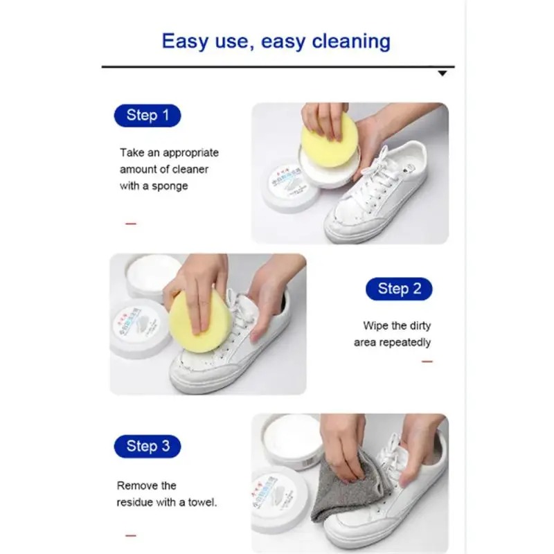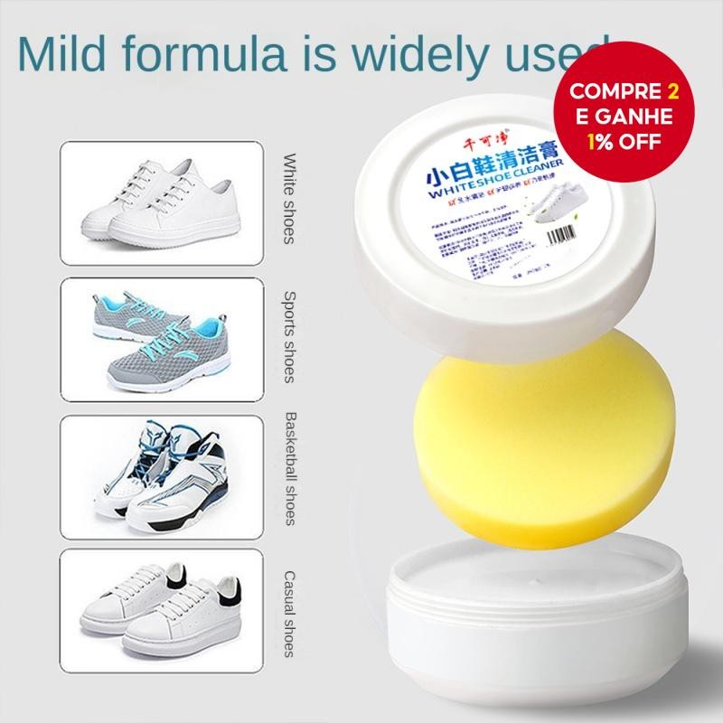 Creme de Limpeza para Tênis Branco 120g – Removedor de Manchas e Clareador com Esponja para Todos os Tipos de Tênis.