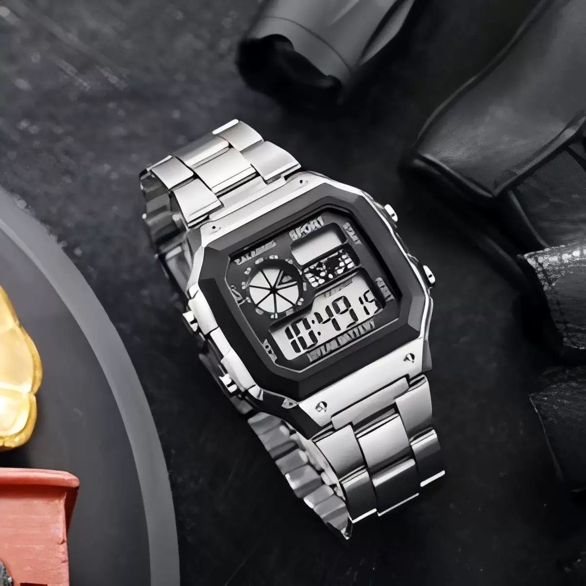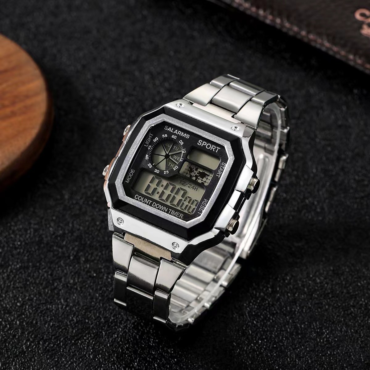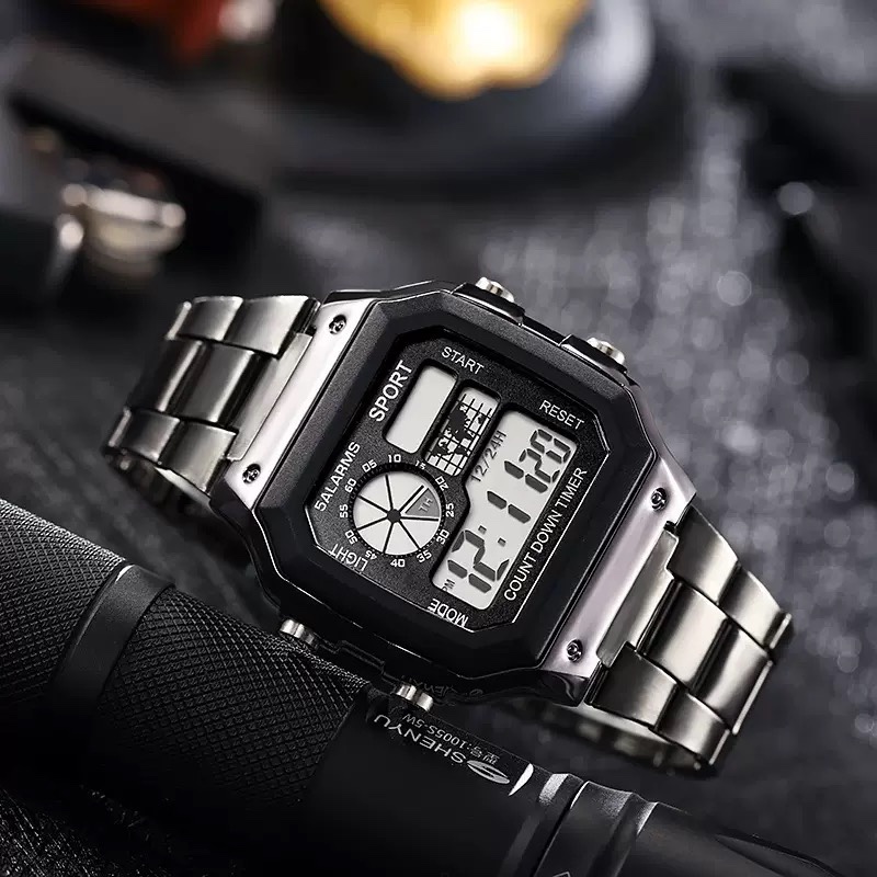Relógio Esportivo Digital Masculino Quadrado - à Prova d'Água, Cronômetro e Tela LED Brilhante.