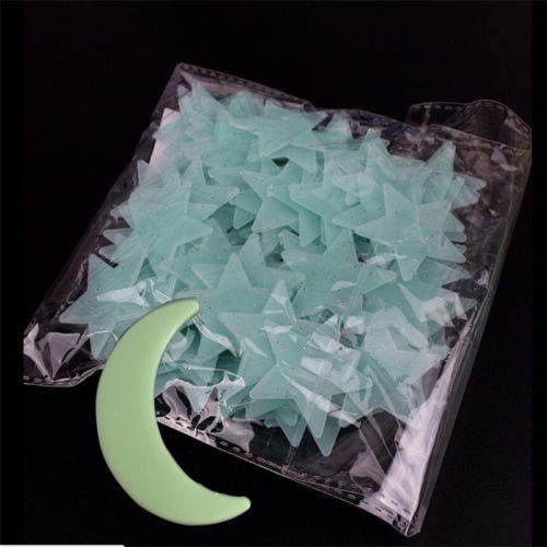 Adesivos De Plástico De Lua 100 E 1 Estrelas Que Brilham No Escuro-Decoração De Teto Parede