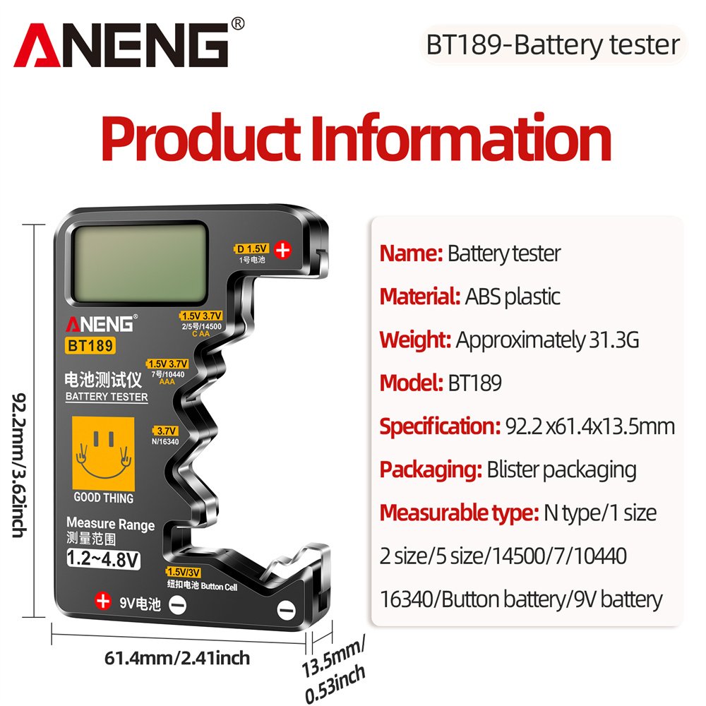 ANENG BT189 Testador De Bateria Universal Display LCD Para 9V , N , D , C , AA , AAA Detector De Banco De Potência Domés