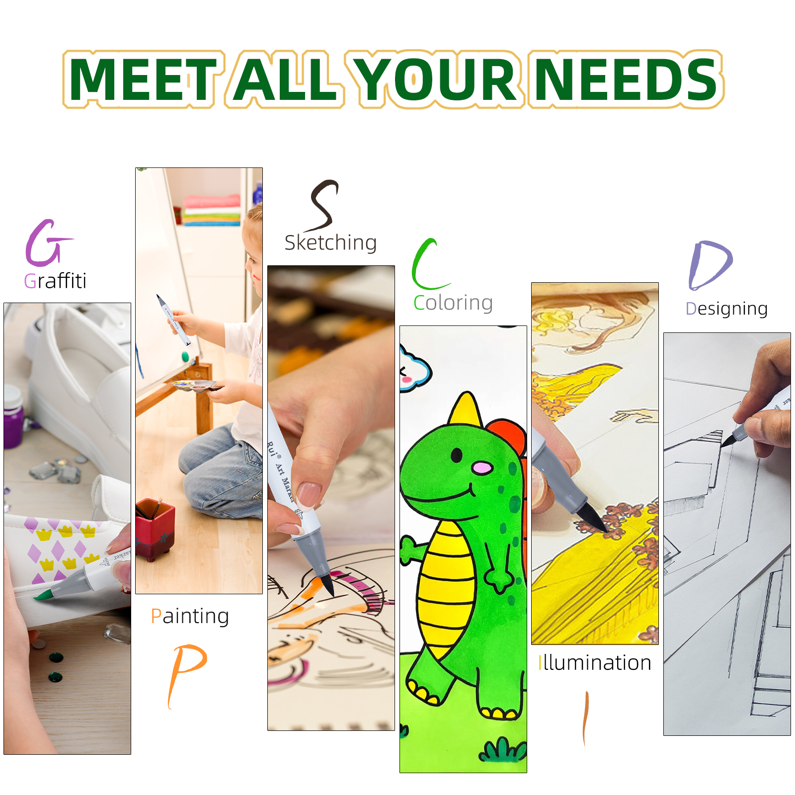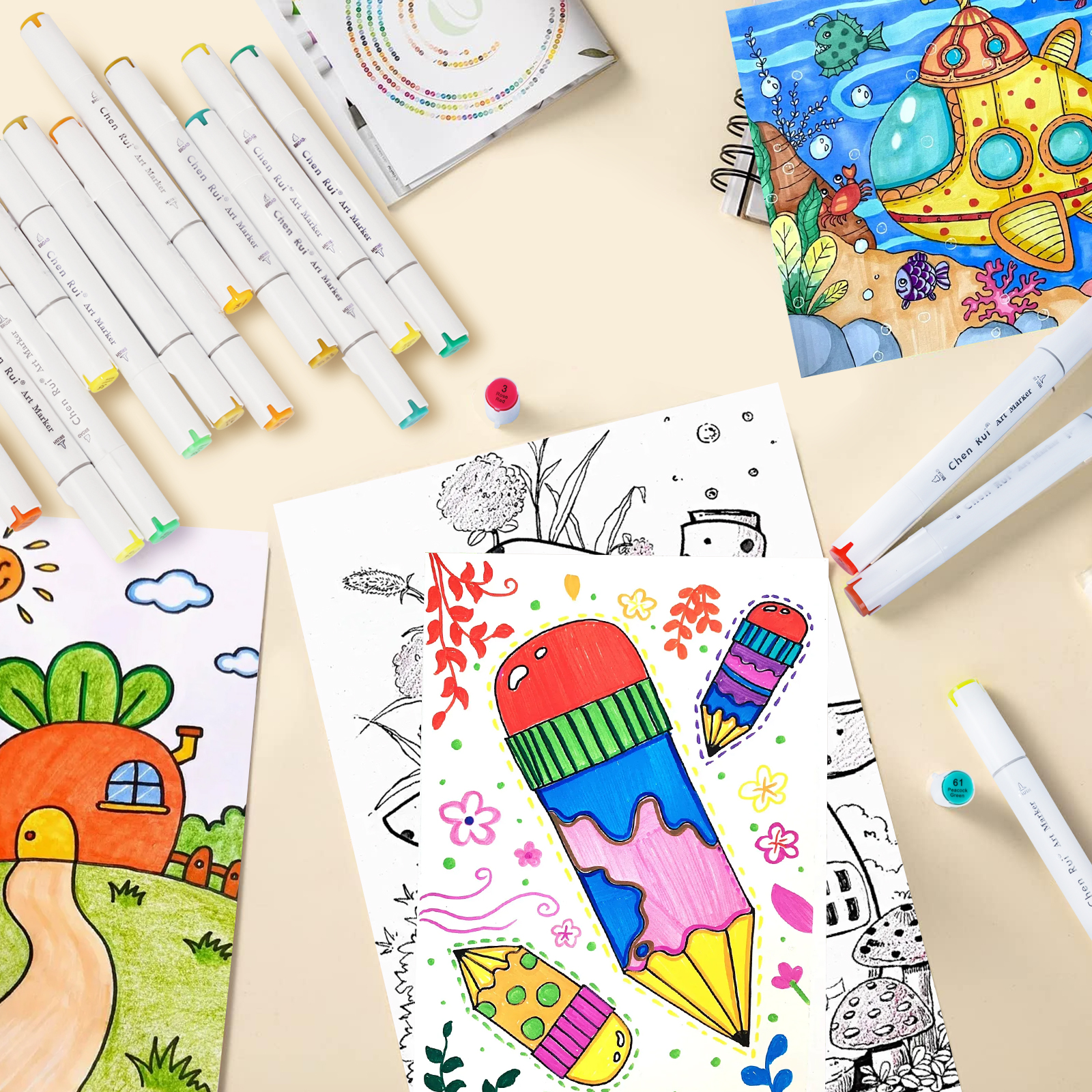 Marcadores De Arte De Ponta Dupla De 100/120 Cores-Canetas Permanentes De Pincel E Cinzel Com Base Para Colorir Presente