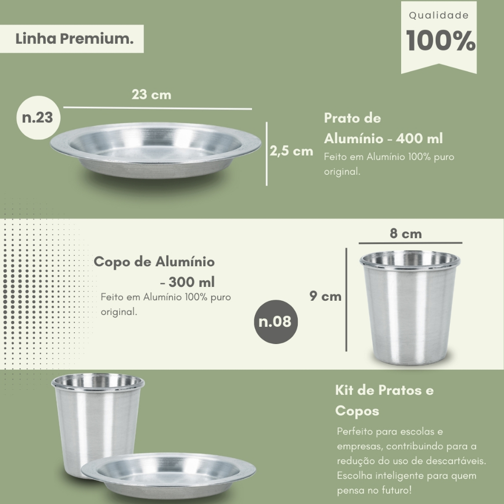 Kit Prato e Copo de Alumínio Para Refeitório Merenda Escolar