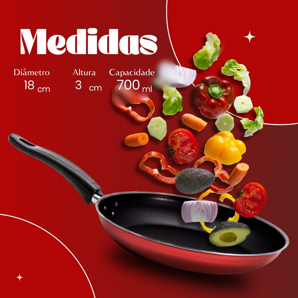 Conjunto Uma Frigideira Francesa Antiaderente Cereja N18 e Espatula
