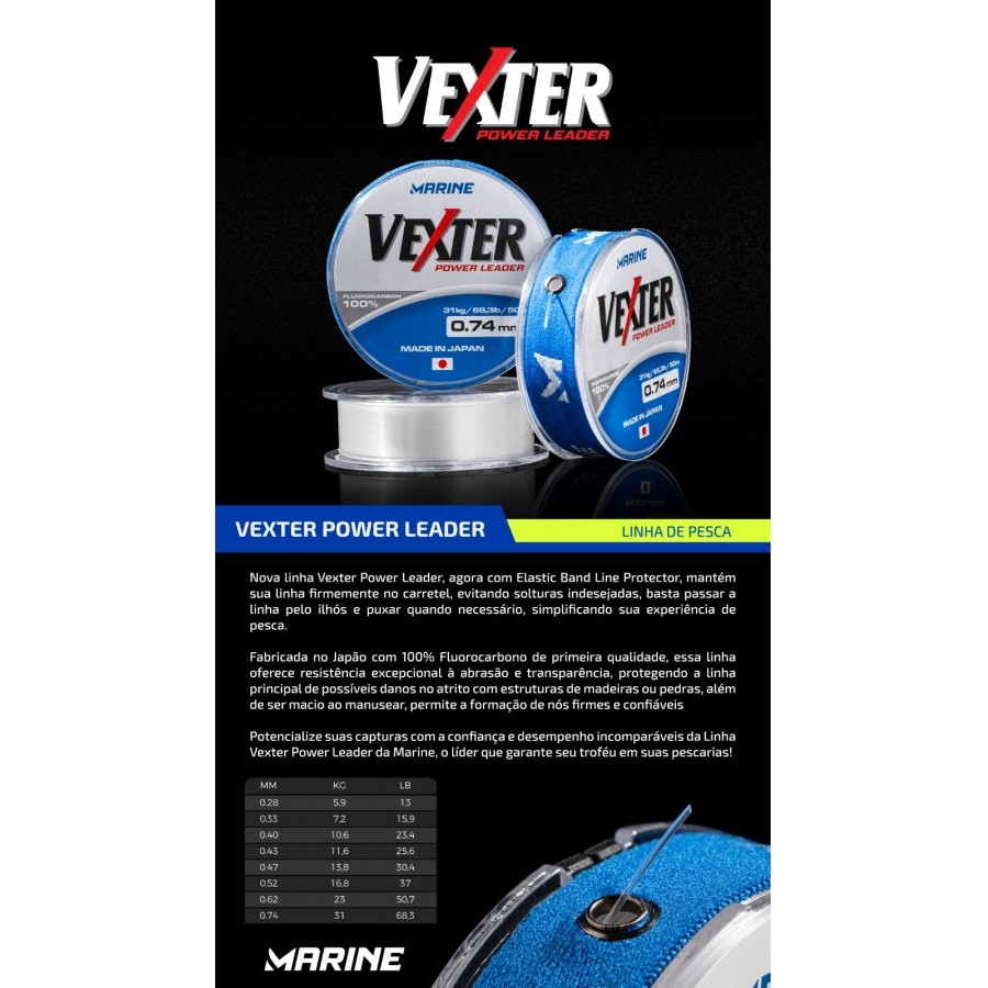 Linha de Pesca Lider Vexter 100% Fluorcarbon 50m - Original Japão