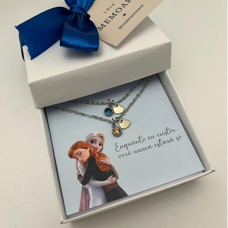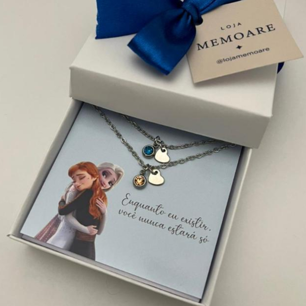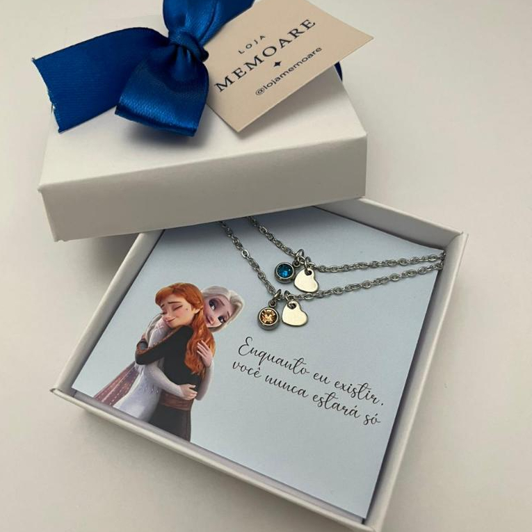 Colar Duplo Frozen Amizade ou Irmãs – Coração com Ponto de Luz + Caixa Presente