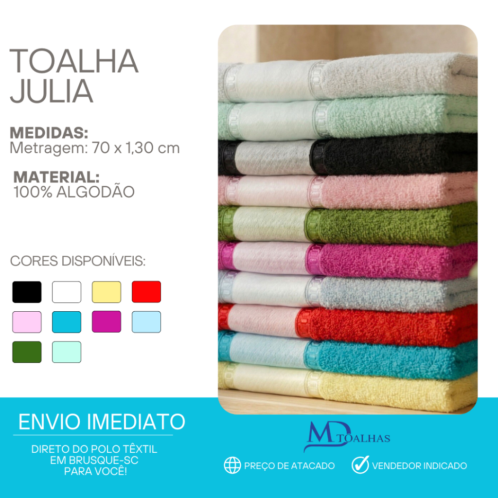 Kit 10 Toalhas de Banho p/ Estampar 100% Algodão Toalha Julia Sublimar Personalizar 1,30 x 70cm Silk