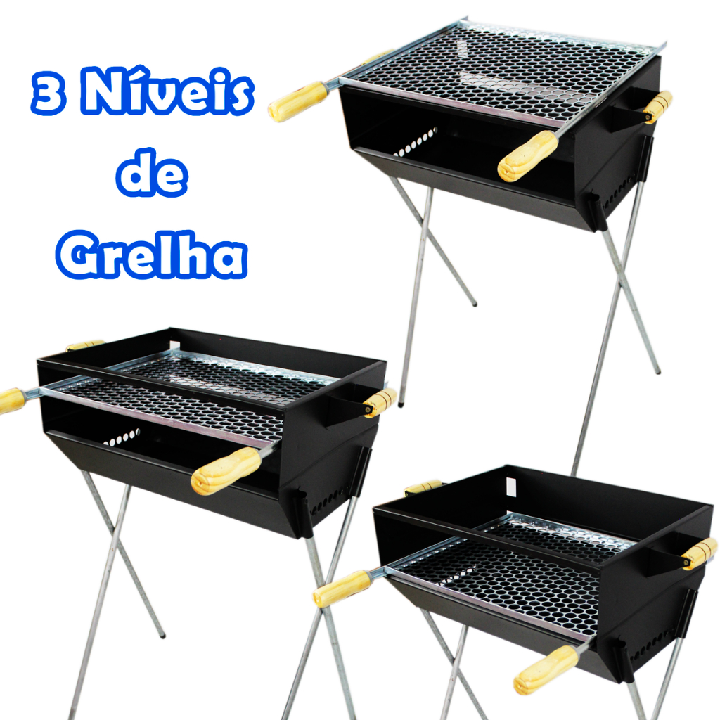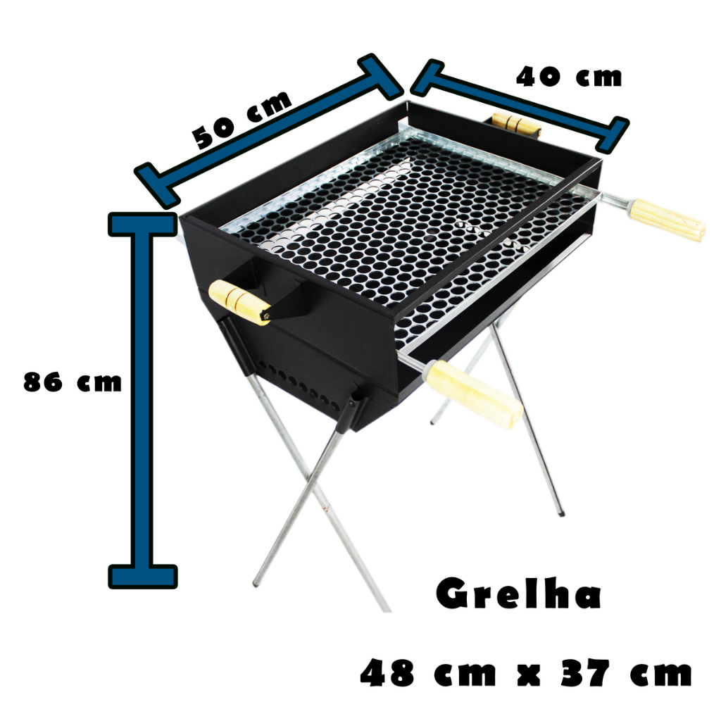 Churrasqueira Grande 50x40 Com Pés Desmontáveis Portátil Aço Galvanizado