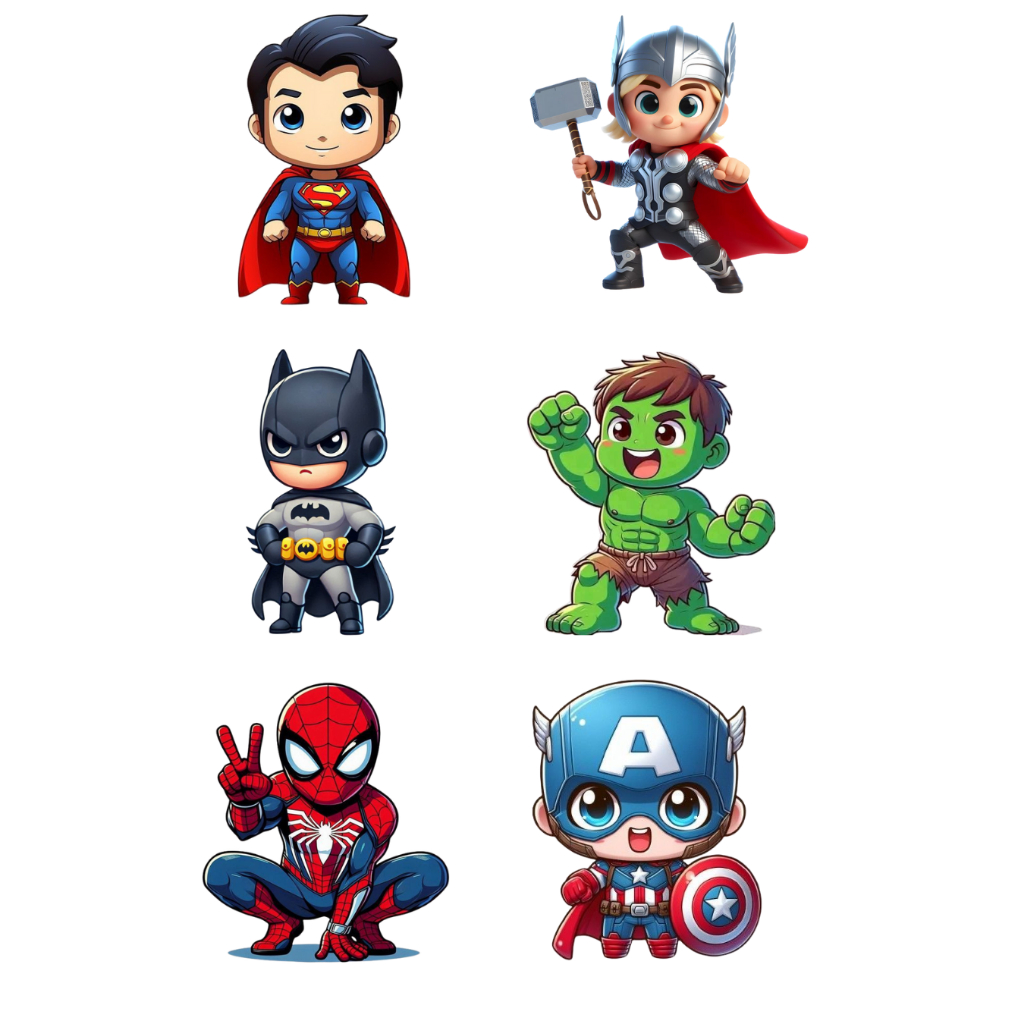 KIT 6 ADESIVOS Heróis menino termocolante DTF pronta para estampar tecido fácil aplicação.