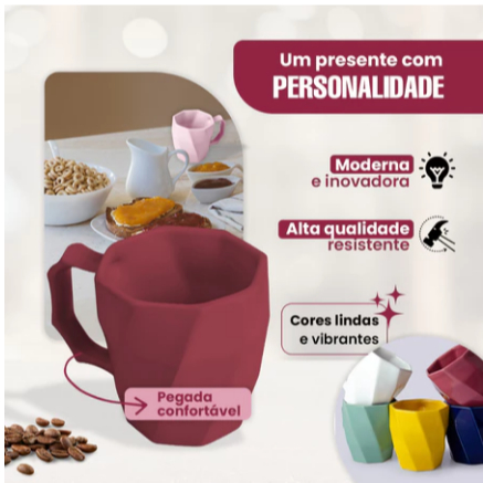 Jogo de Canecas Cerâmicas Kit 6 peças Louça Café da Manha Conjunto Cores Variadas
