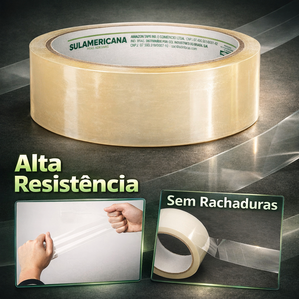 Kit 10 Fita Adesiva Embalagem Acrílica Transparente 24mmX40m