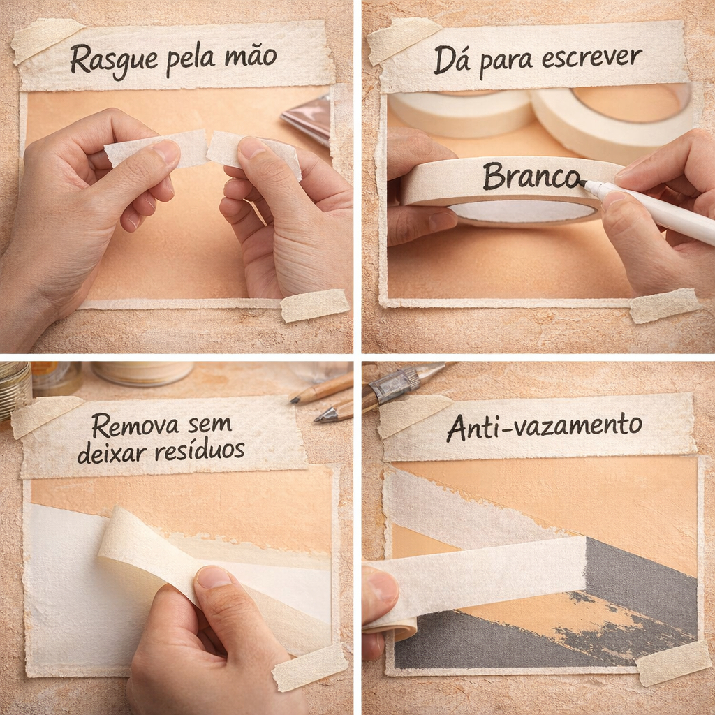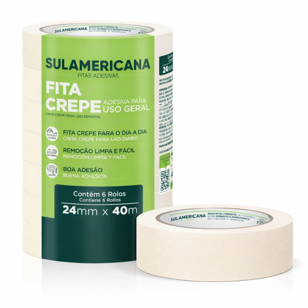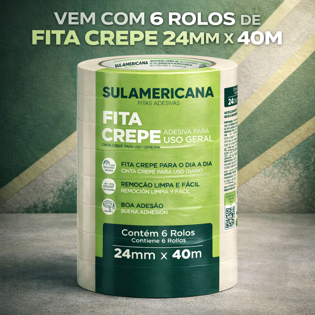 Kit Com 6 Rolos Fita Crepe Adesiva 24mm X 40m Multiuso Com Remoção Fácil