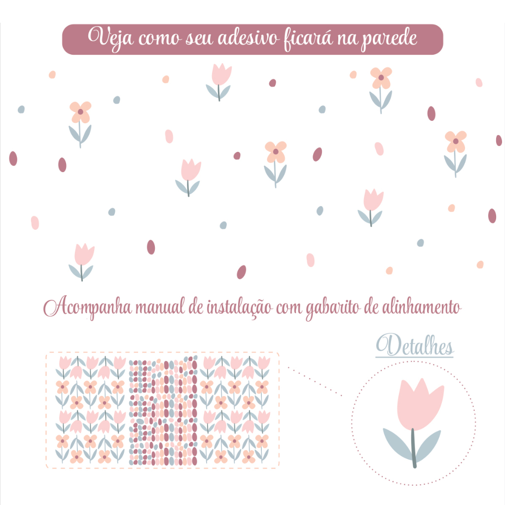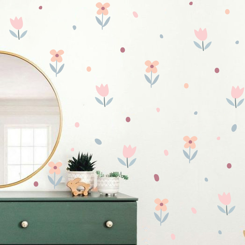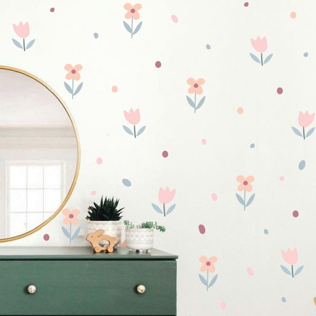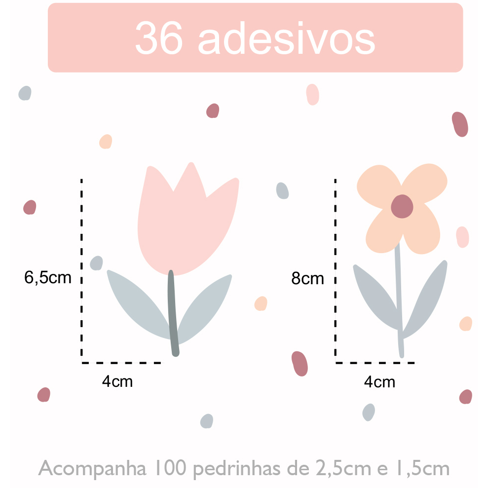 Adesivo de parede infantil flores tulipa margarida e bolinha decorativo quarto de menina flor Floral