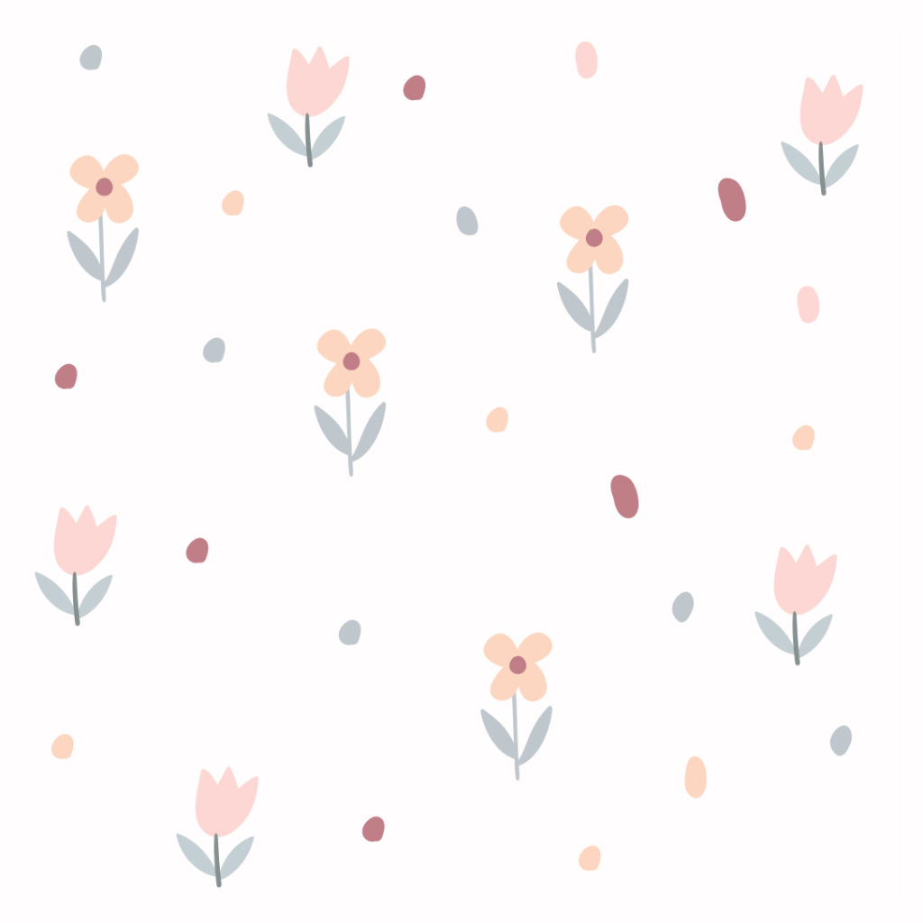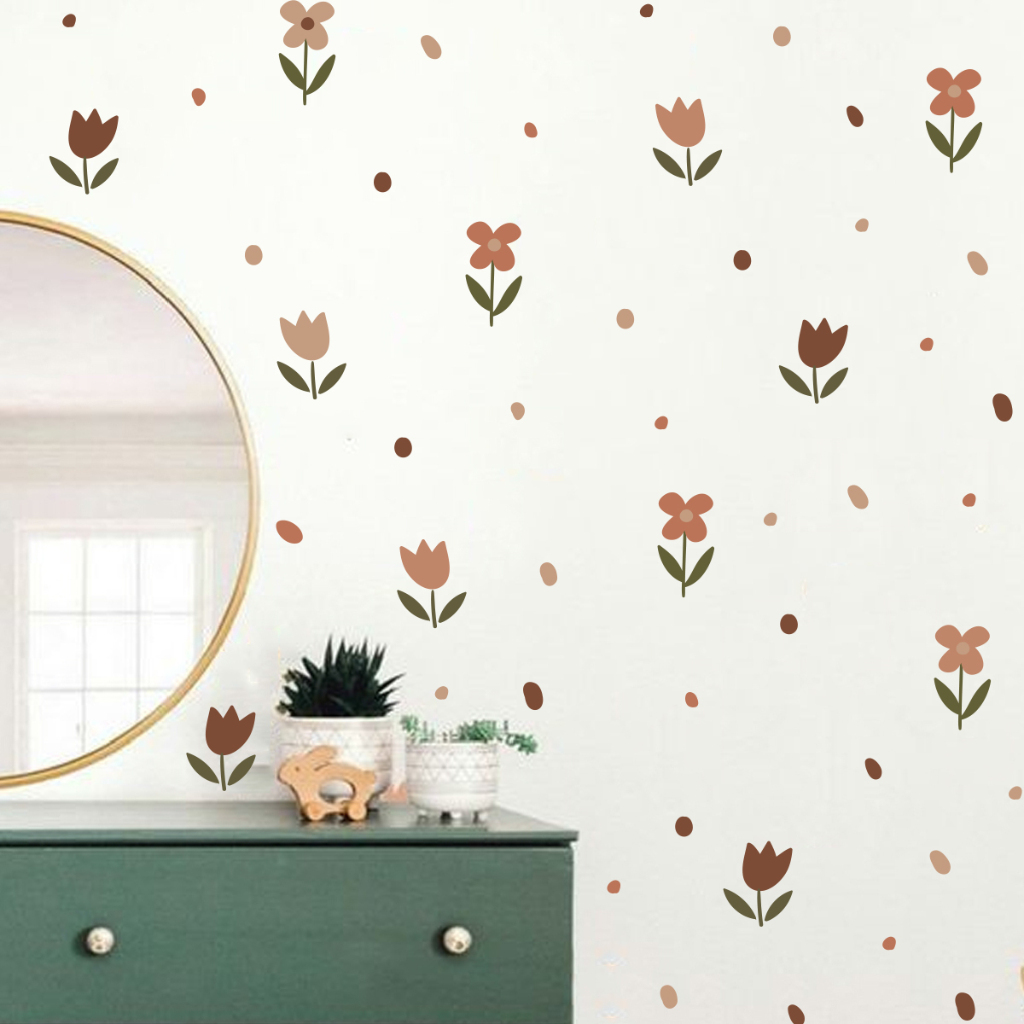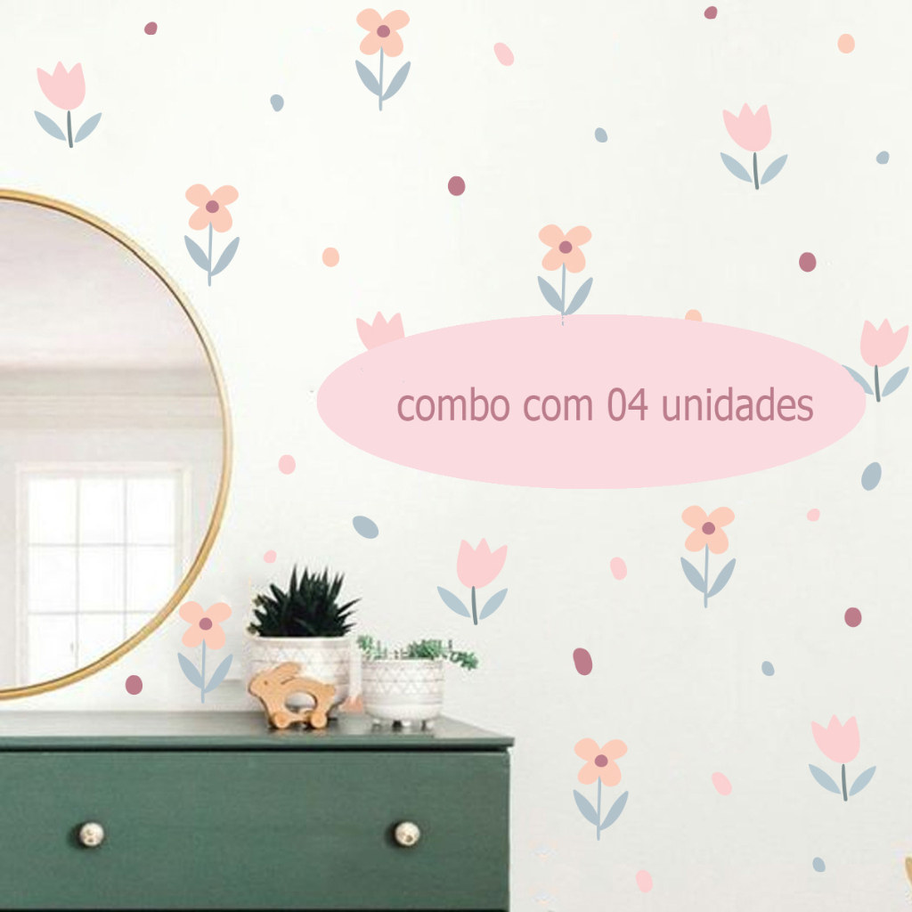 Adesivo de parede infantil flores tulipa margarida e bolinha decorativo quarto de menina flor Floral