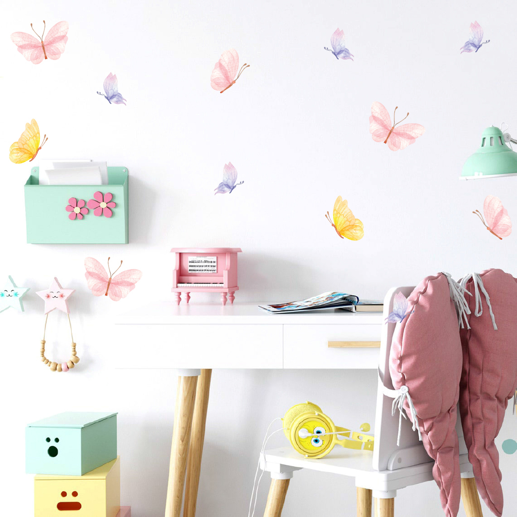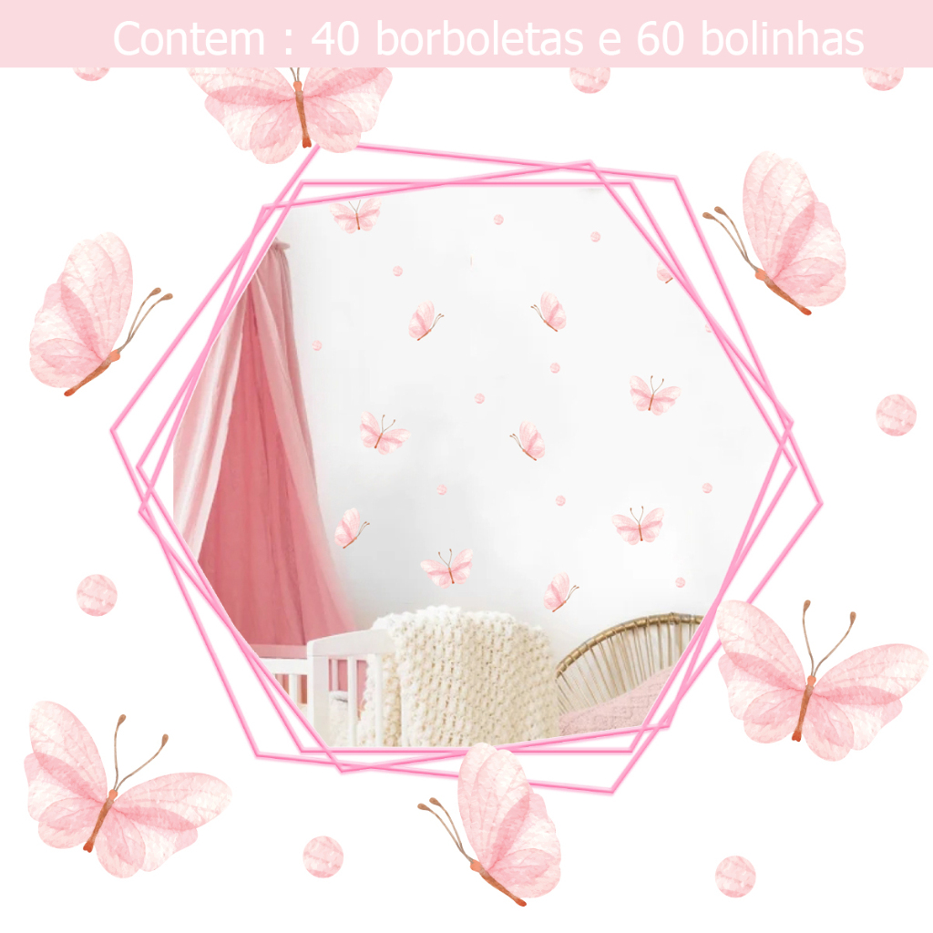 Adesivo De Parede Infantil Menina Borboletas e bolinhas Parede Quarto decorativo aquarela borboletas