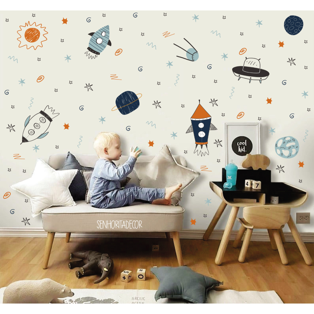 Adesivos de parede Astronauta Foguete Estrelas Adesivo Decoração Decorativo Astronalta Espaço