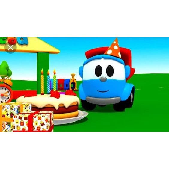 Painel de Festa em Lona 2x2m Personalizado em Lona Fosca - Tema Léo e o Caminhão