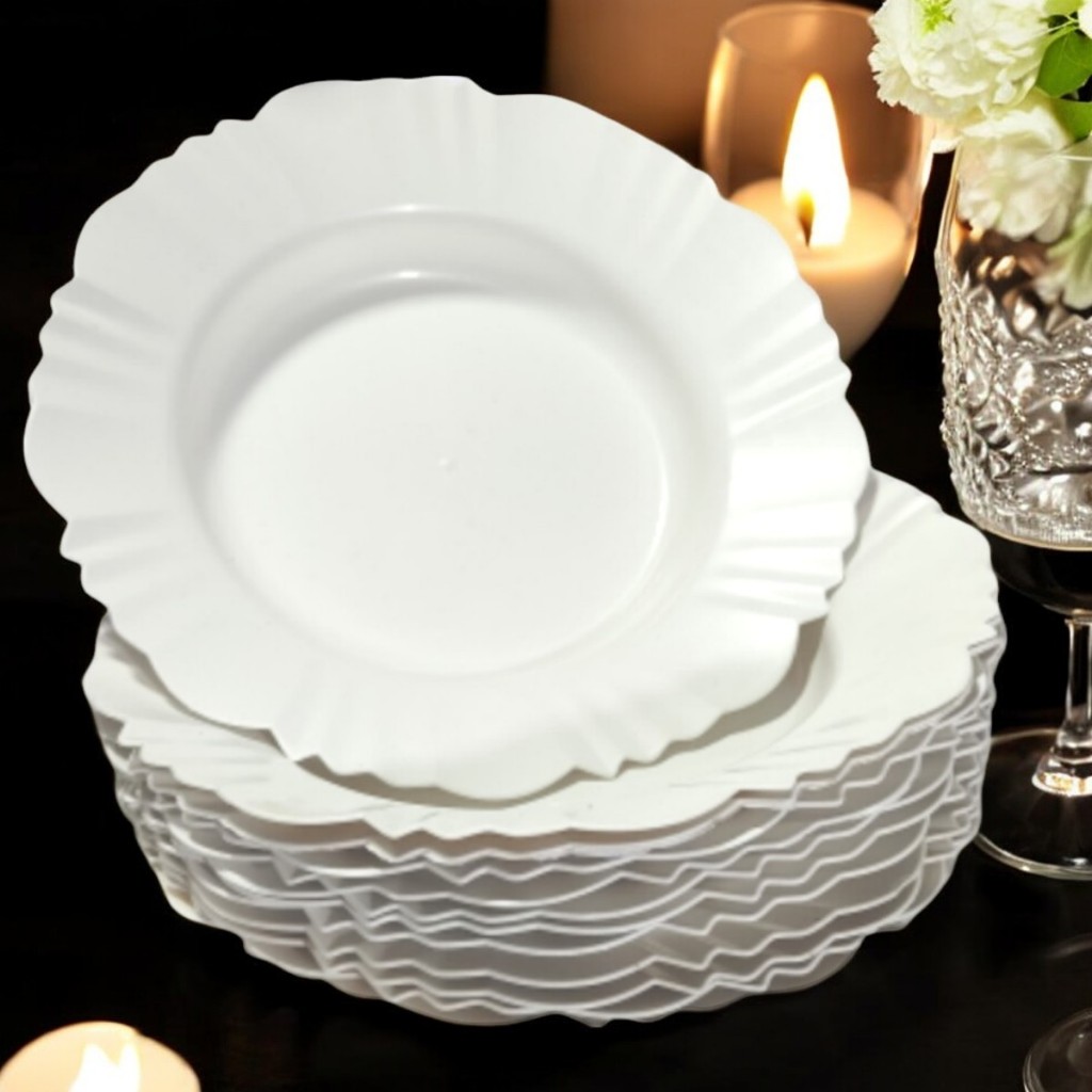Kit 50 Prato Fundo com Borda Branco Refeição Churrasco Festa Pratos Plastico