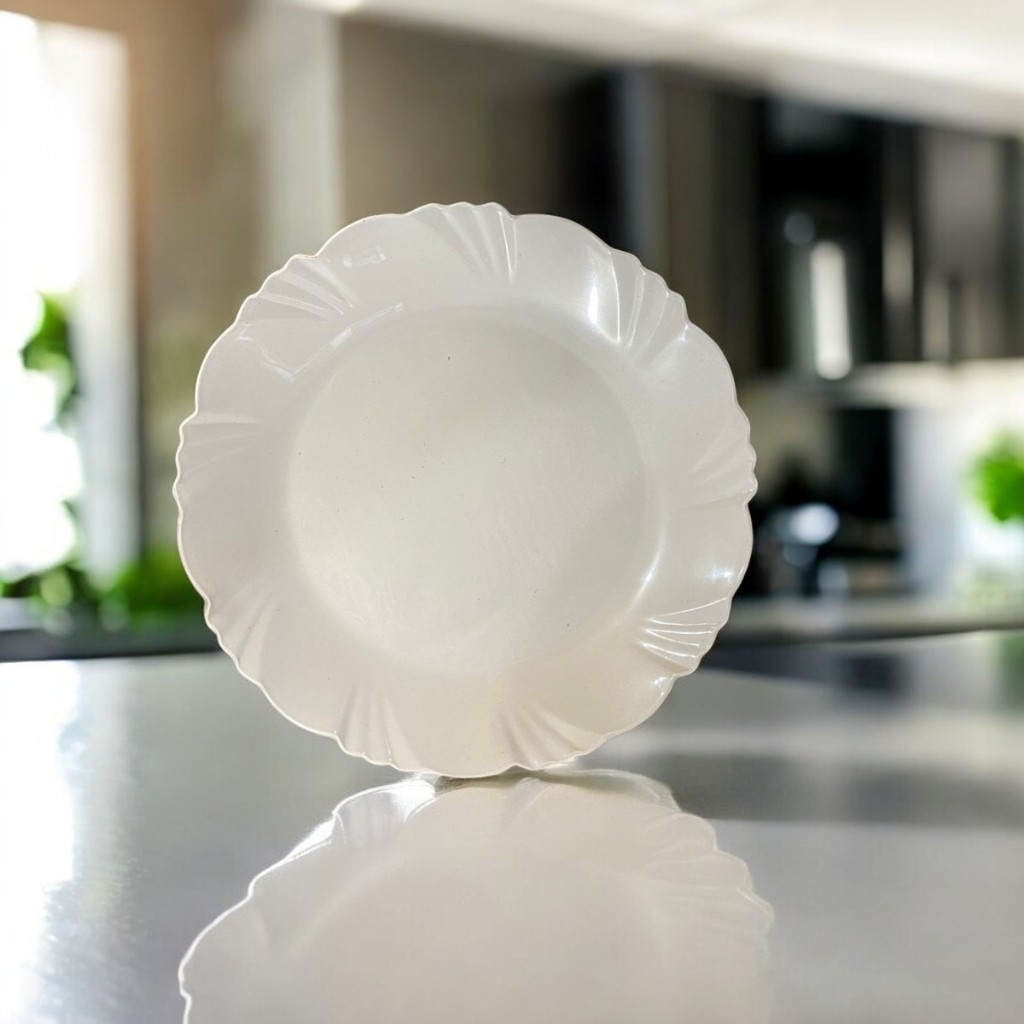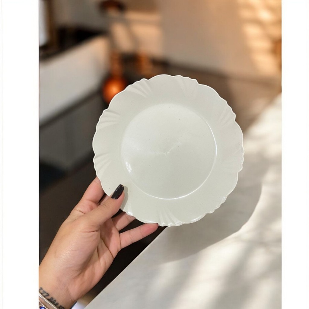 Kit 50 pratos sobremesa pétala branco redondo plástico mesa posta sorvete