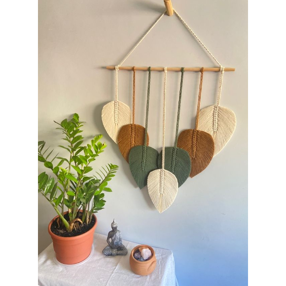 Painel parede folhas em Macramê decoração