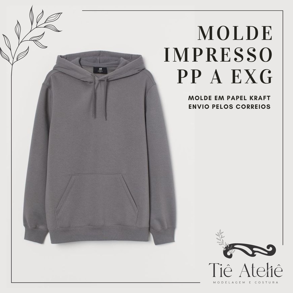 MOLDE EM PAPEL KRAFT DE BLUSA MOLETOM MASCULINA COM CAPUZ E BOLSO CANGURU PARA COSTURA EM PAPEL