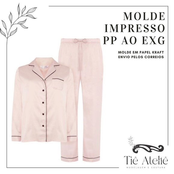 MOLDE EM PAPEL KRAFT DE PIJAMA AMERICANO FEMININO LONGO PARA COSTURA MODELAGEM EM PAPEL KRAFT