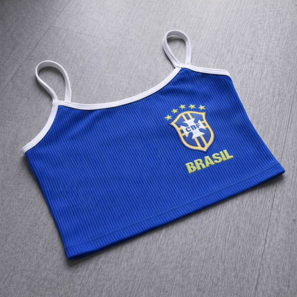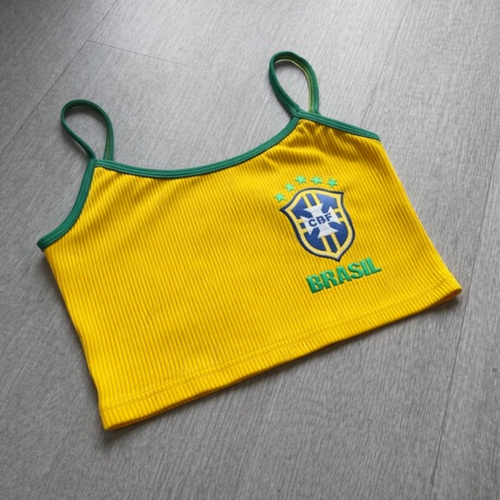 Kit 2 Cropped Feminino Brasil Canelado Alça Blusa Estilosa Verão