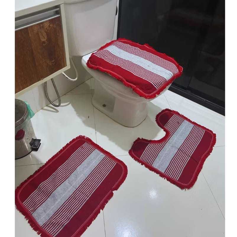 Kit Jogo de Banheiro 3 Peças Conjunto Decorativo Algodão