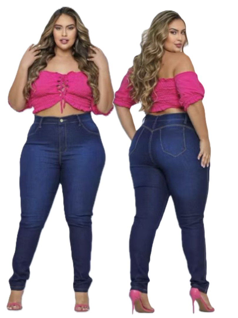 Calça Jeans Feminino Plus Size Marmorizada Cintura Alta Modelagem Levanta Bumbum Com Lycra Strech E Elastano Premium