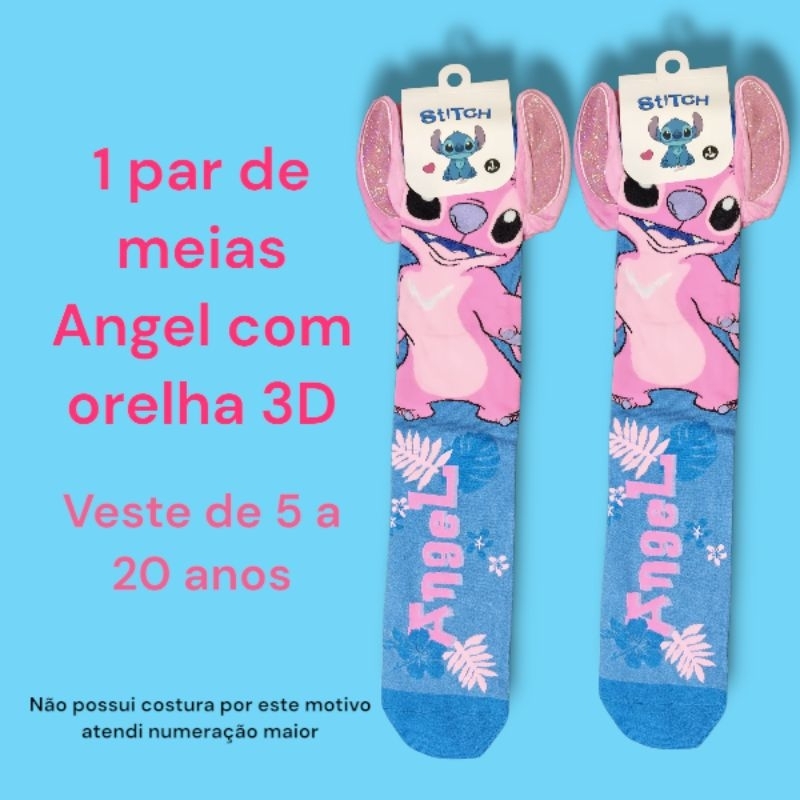 1 par de meias Stitch angel 3d divertida com orelhinhas
