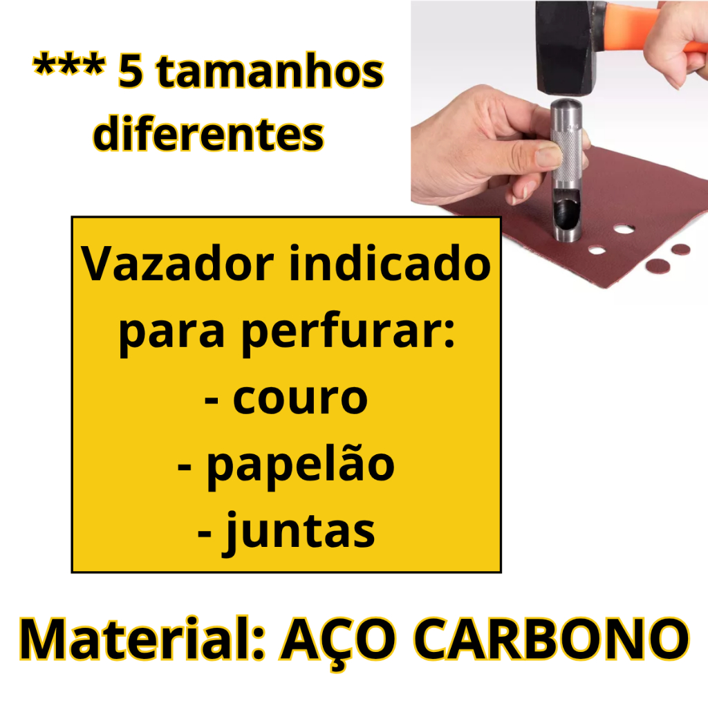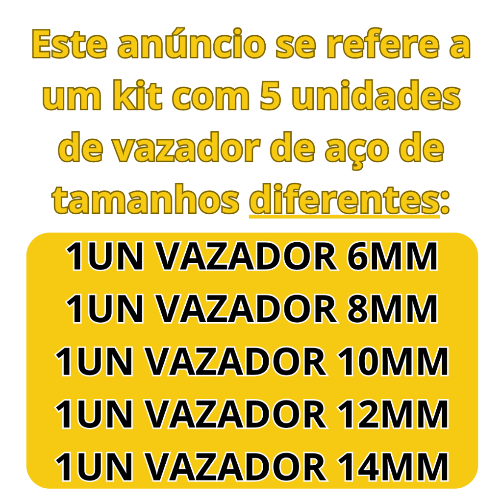 Jogo de Vazadores 6,8,10,12,14mm Aço Carbono 5 peças Vonder
