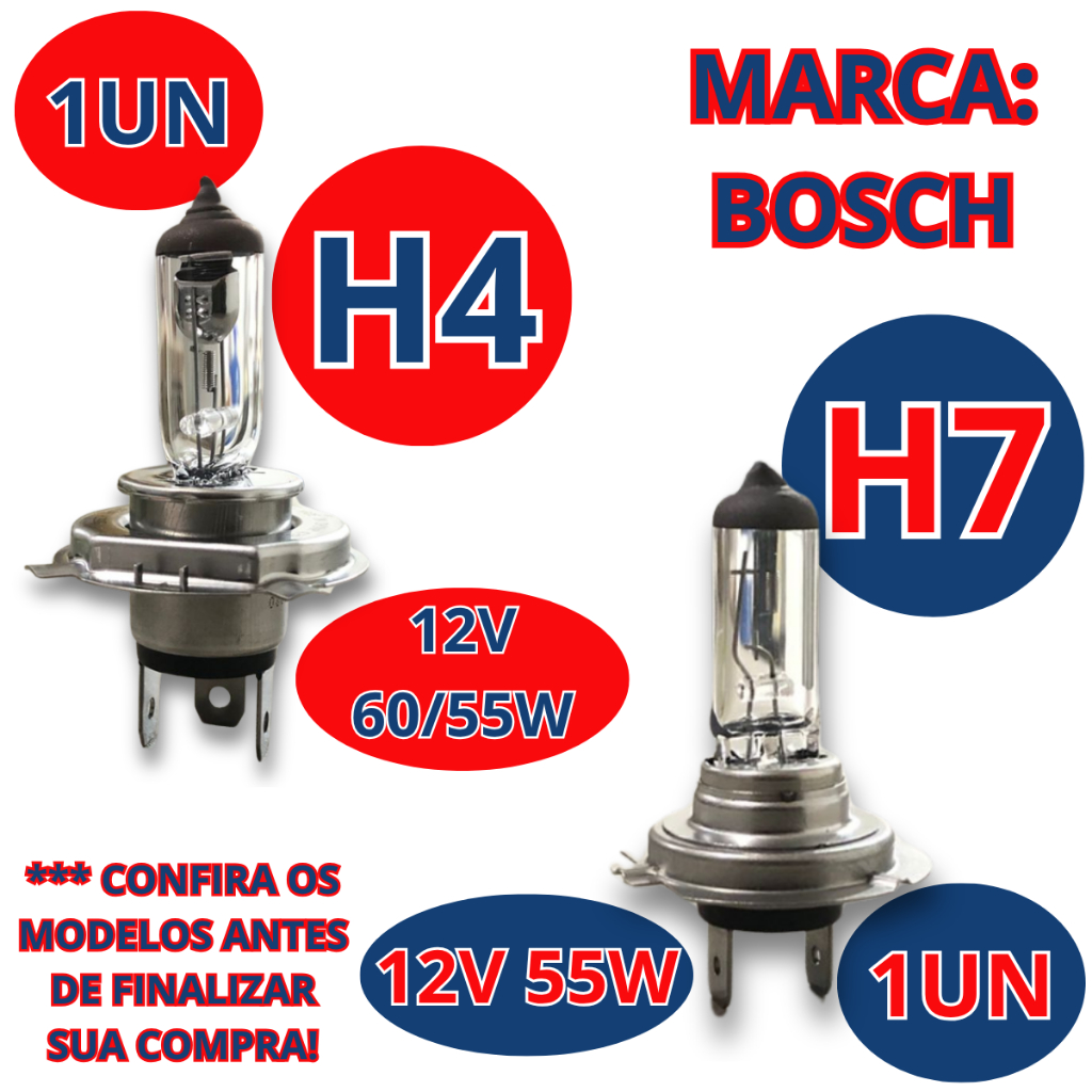 Kit Lampada H4 + H7 Farol Baixo Vw Gol G5 2008 A 2012 Bosch