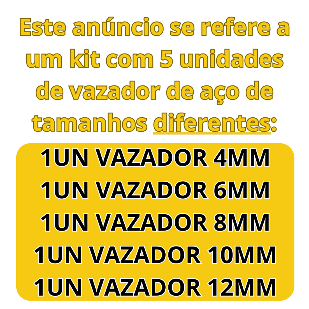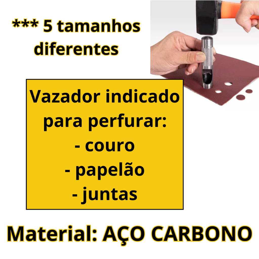 Kit 5 Furador 4,6,8,10,12mm Couro Vazador Perfurador Aço Vonder