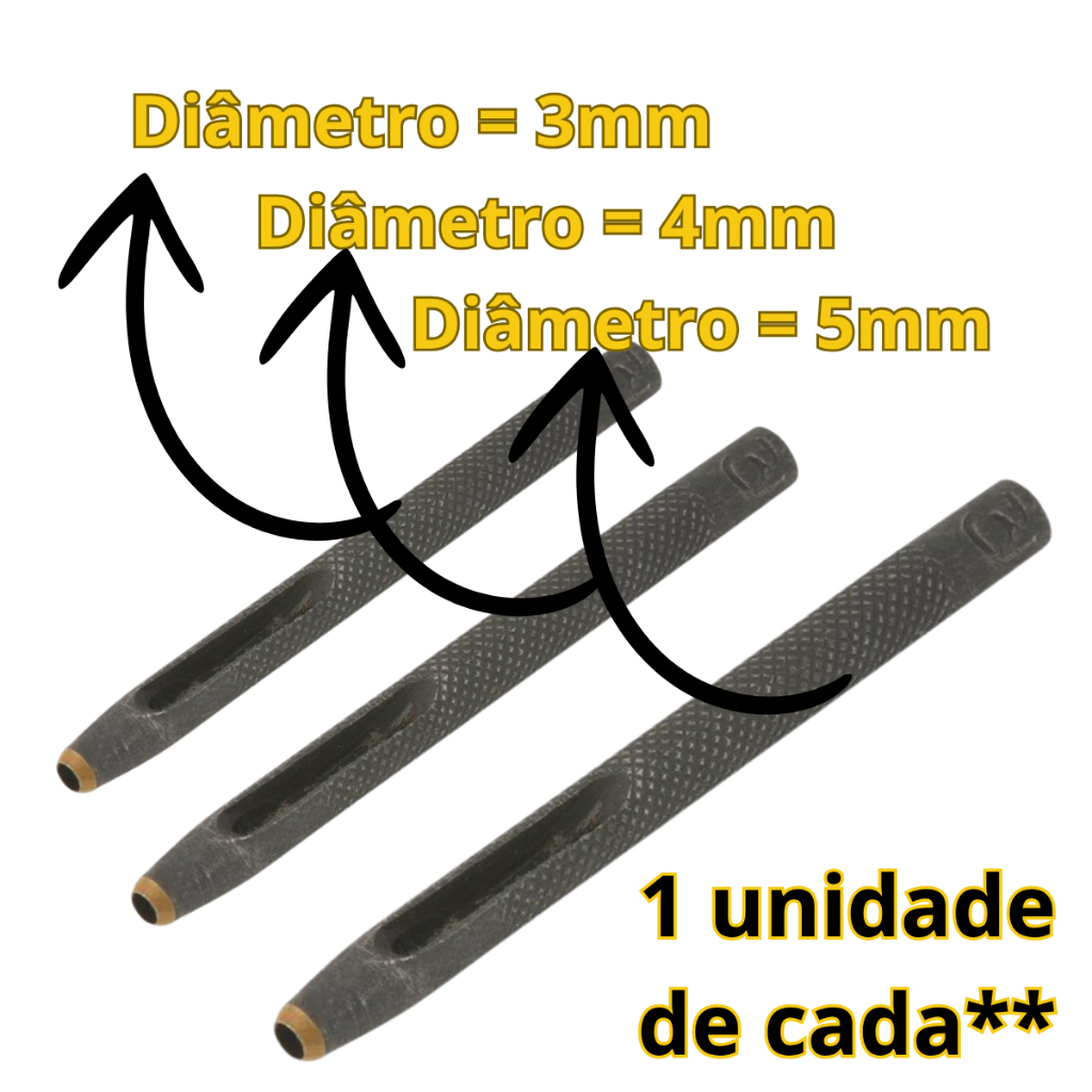 Kit 3 Furador 3,4,5mm Couro Vazador Perfurador Aço Vonder