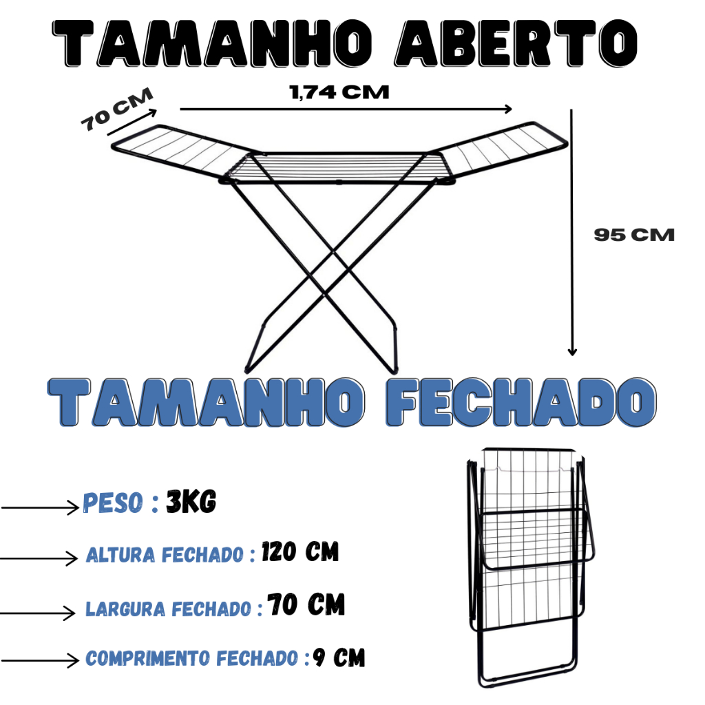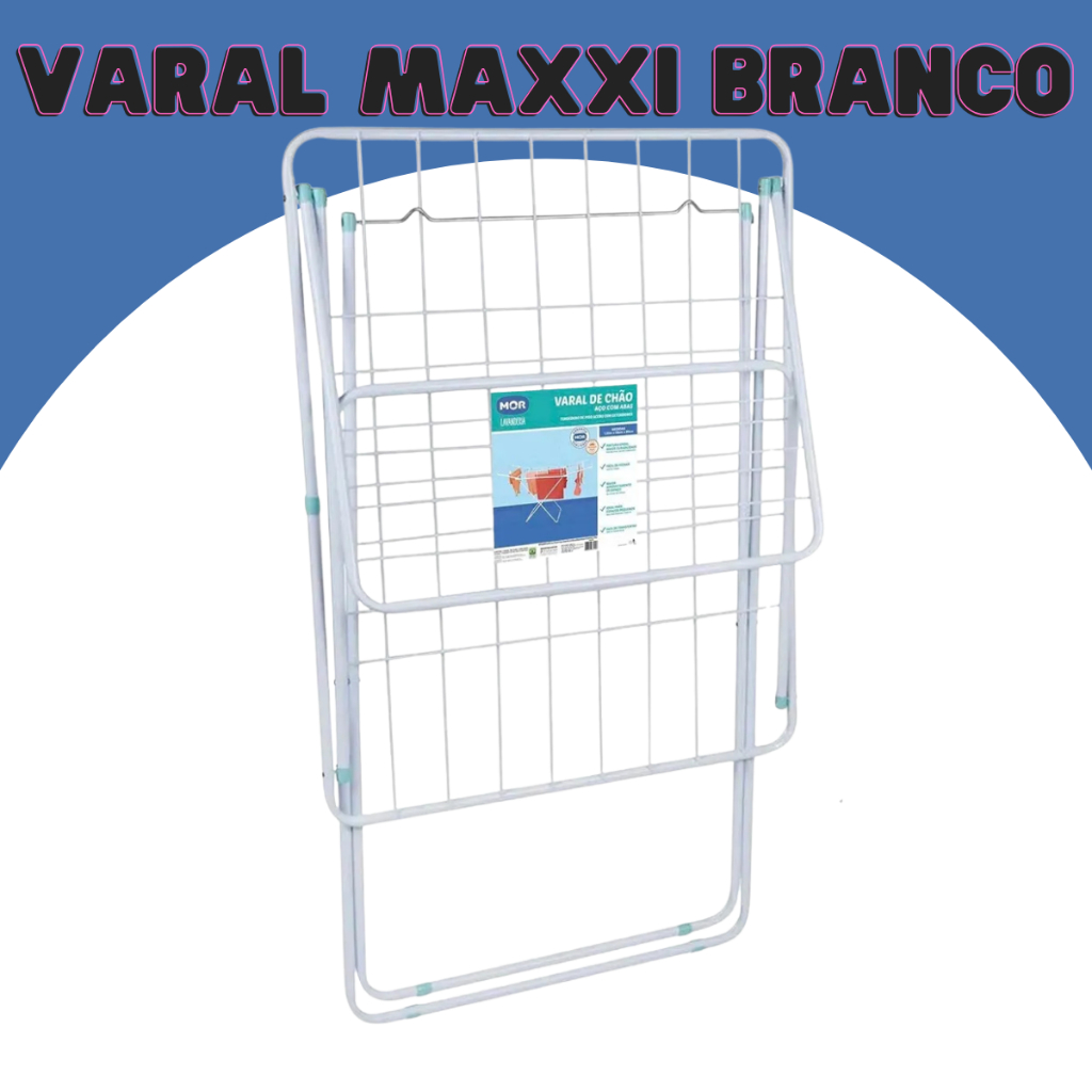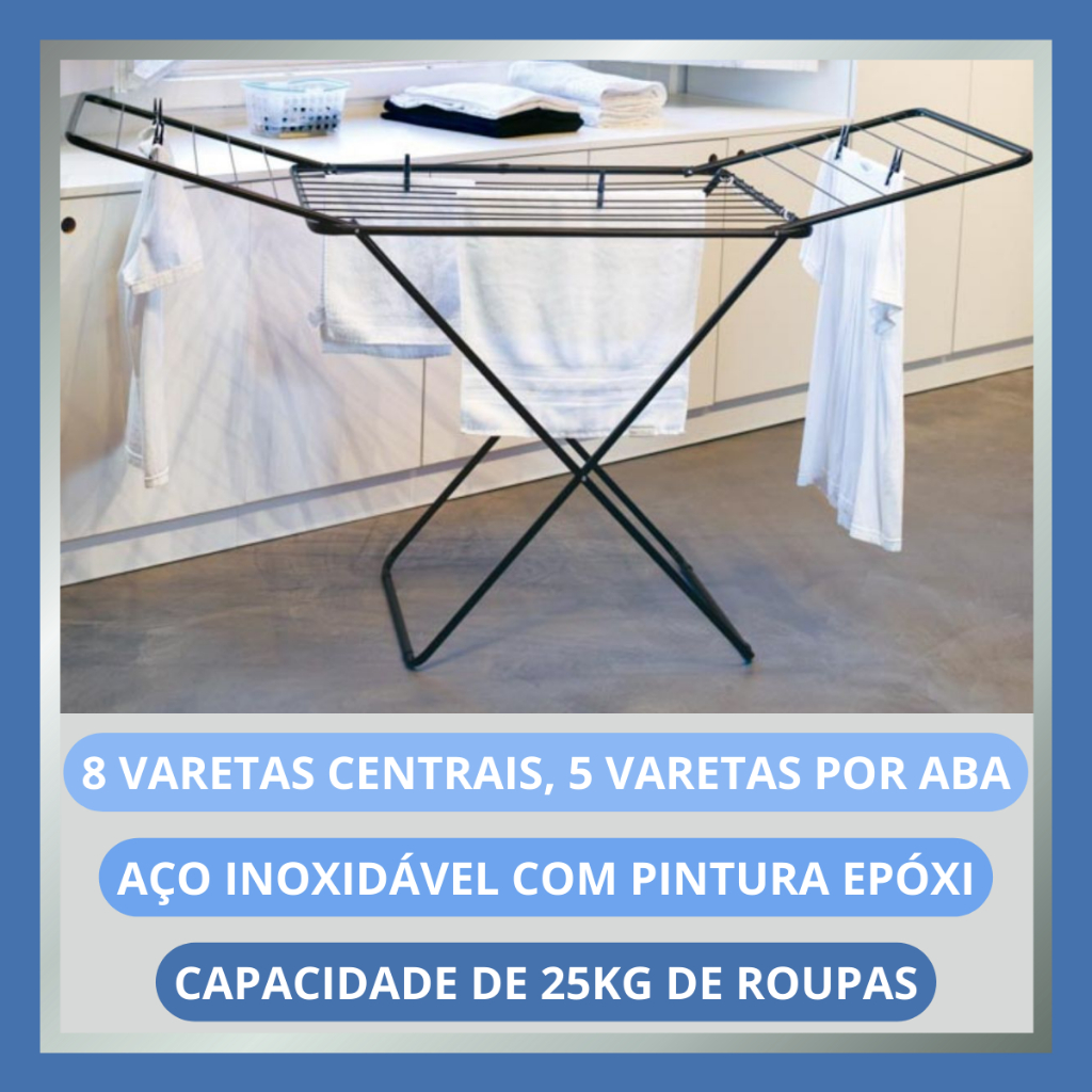 Varal De Chão Roupas Maxi Abas 28kg Resistente 16,2 Mts