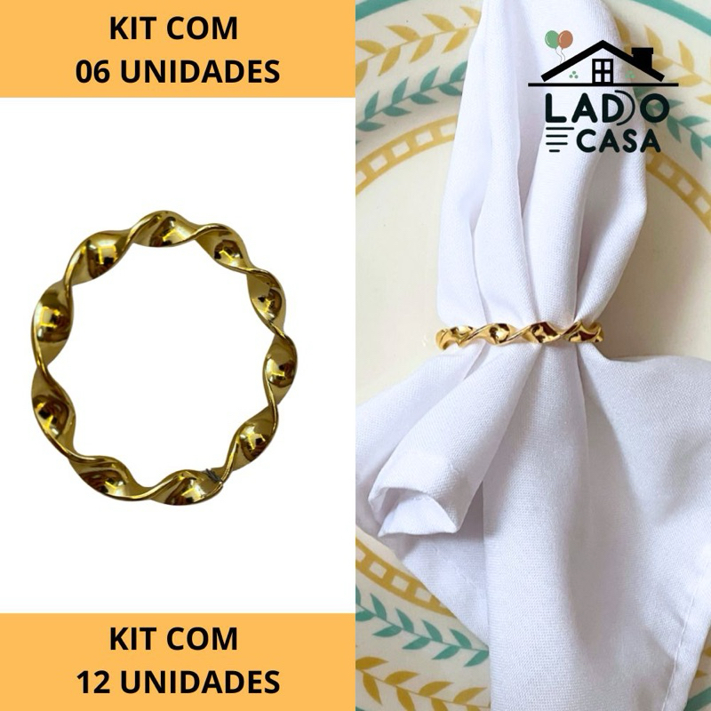 Kit 06 ou 12 Anel Argola Porta Guardanapo Casamento Mesa Posta Trançado