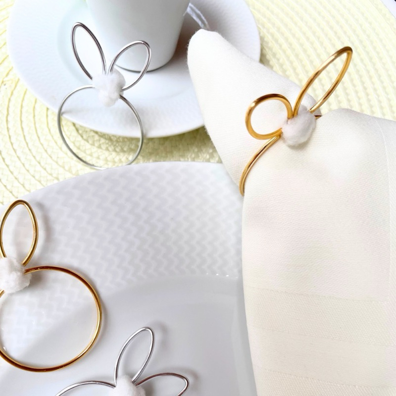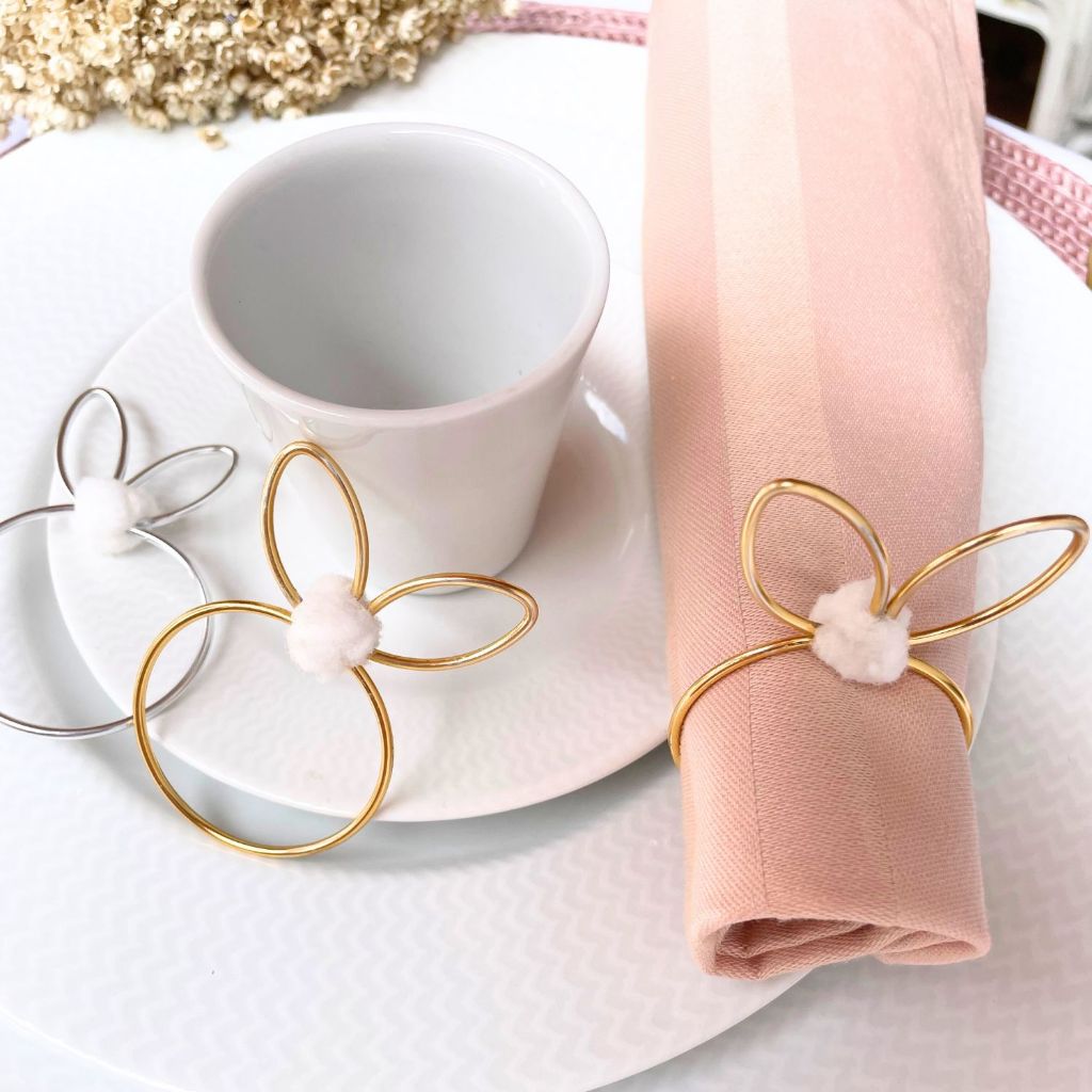 Kit 06 ou 12 Anel Porta Guardanapo Argola Mesa Posta Páscoa Coelho Metalizado