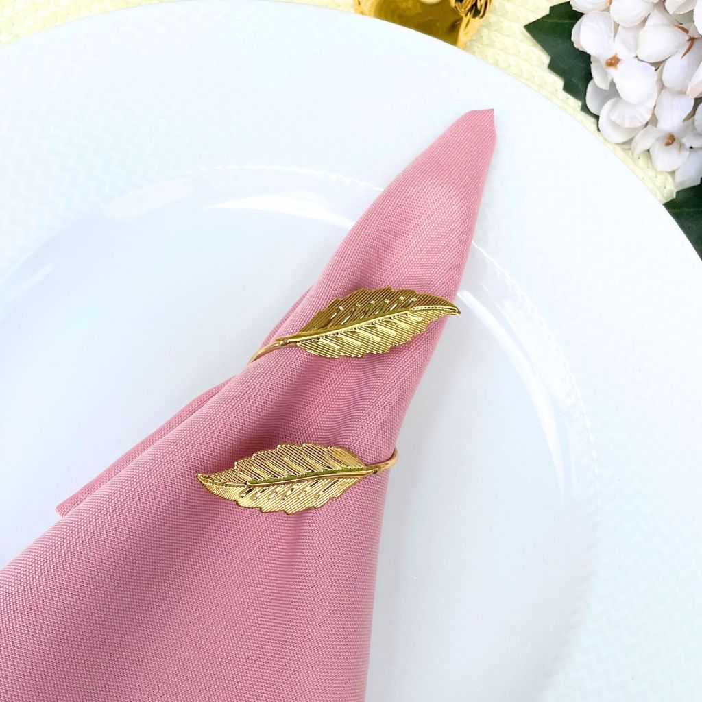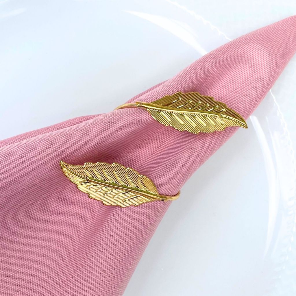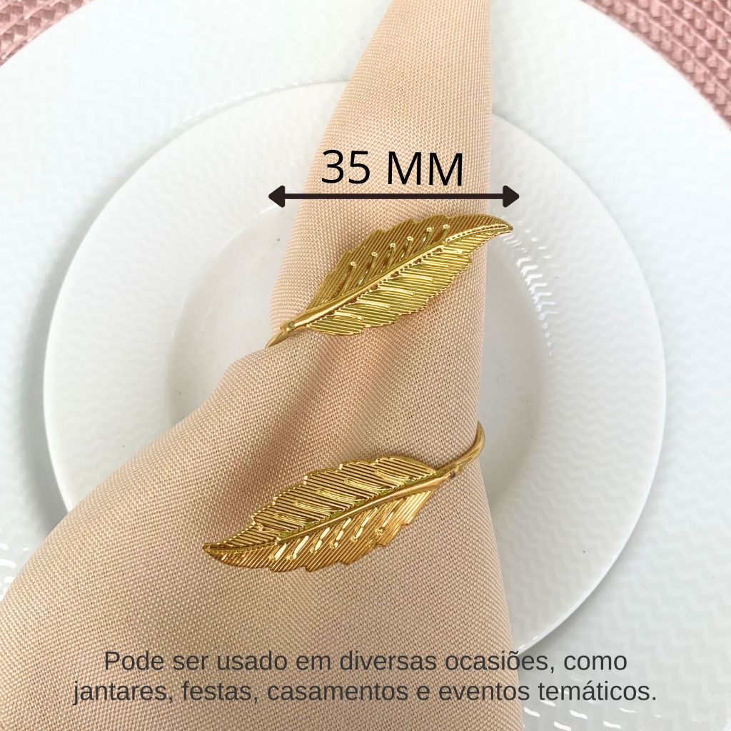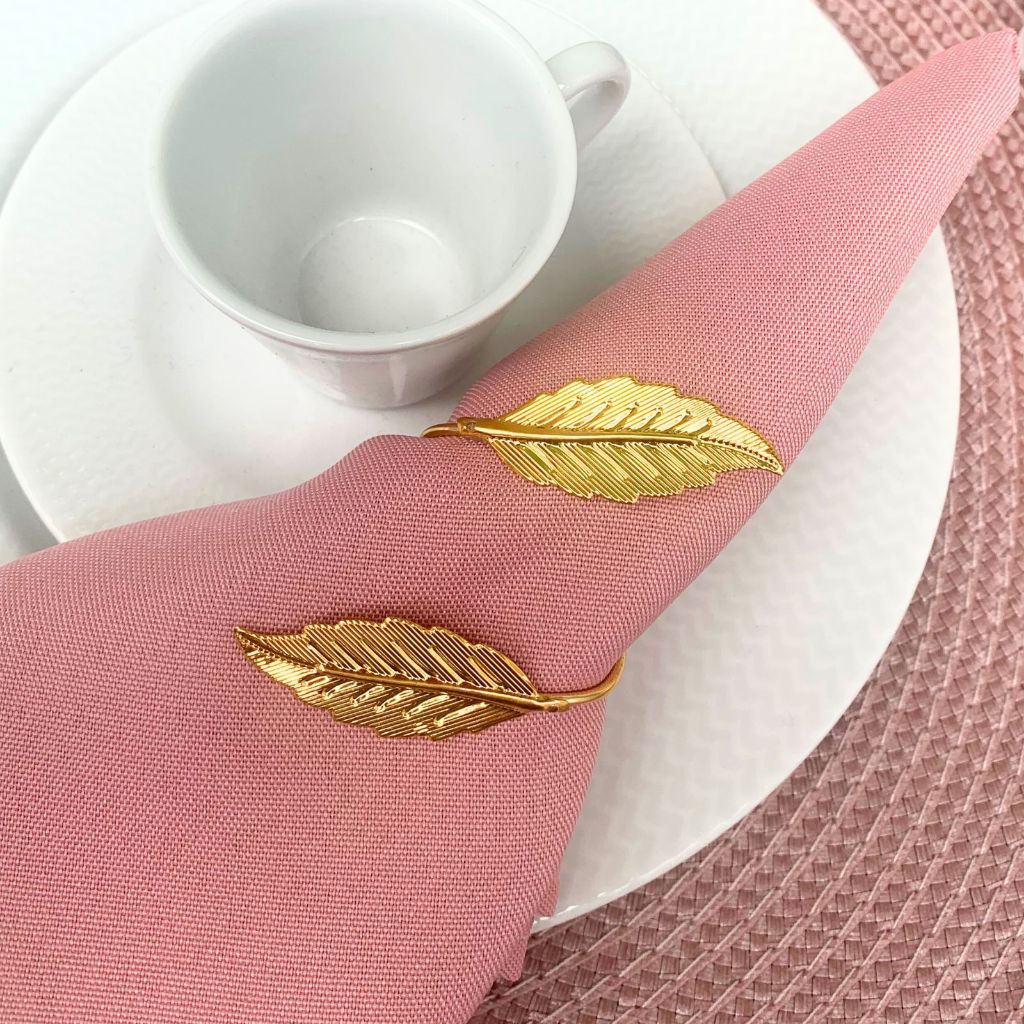 Kit com 06 ou 12 Anel Porta Guardanapo Folha Dourada Mesa Posta