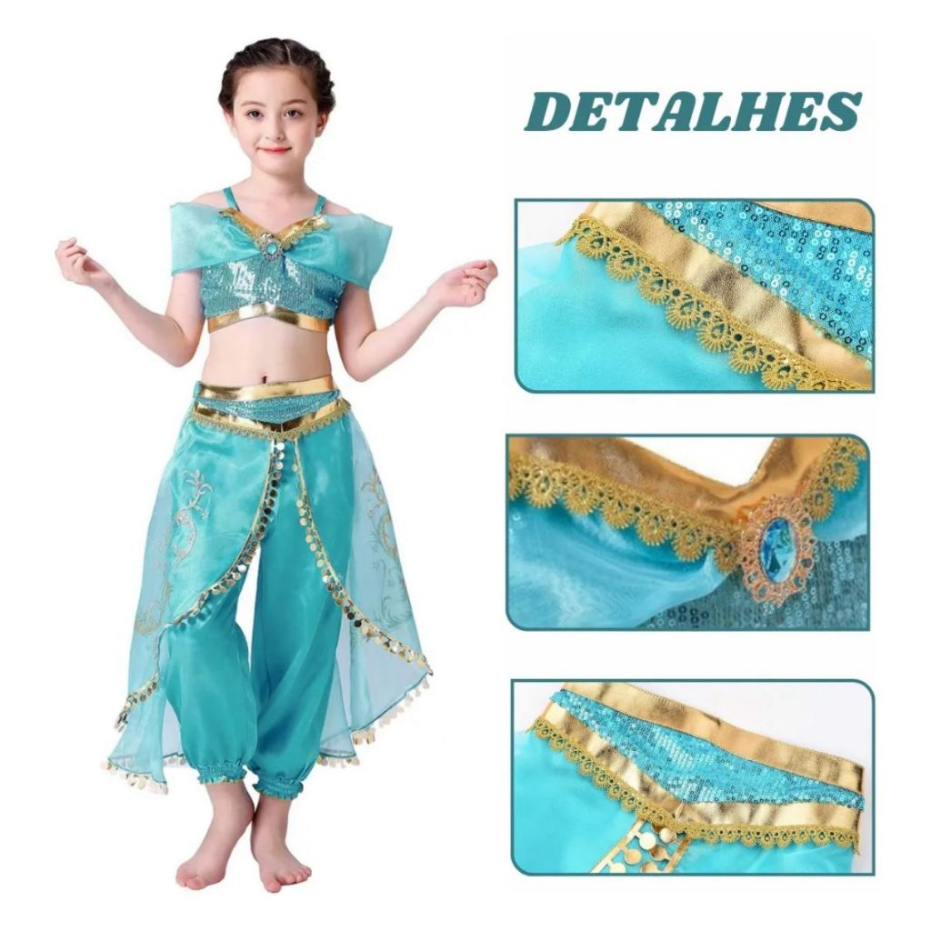 Fantasia Jasmine Princesa Disney Halloween dia das crianças.