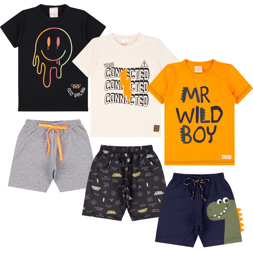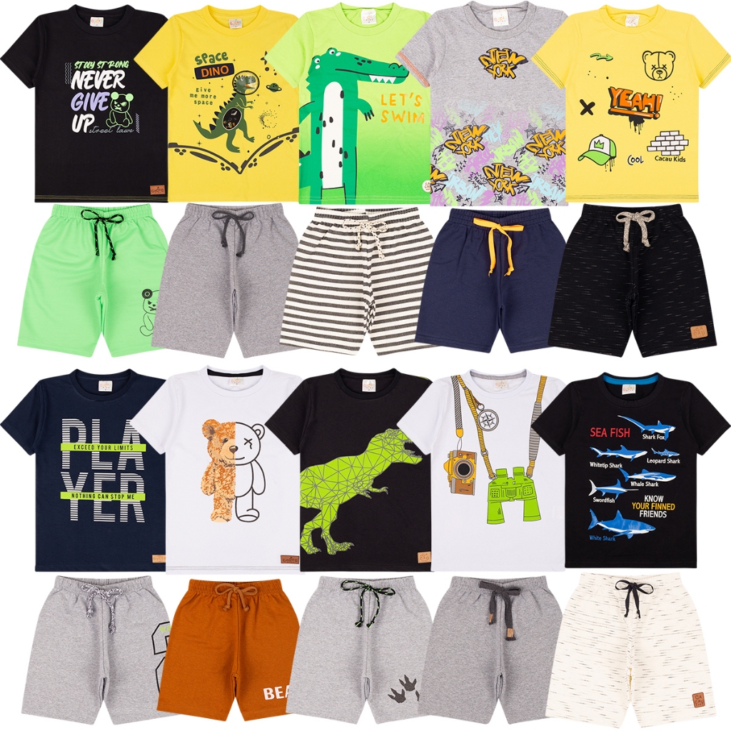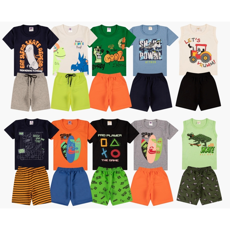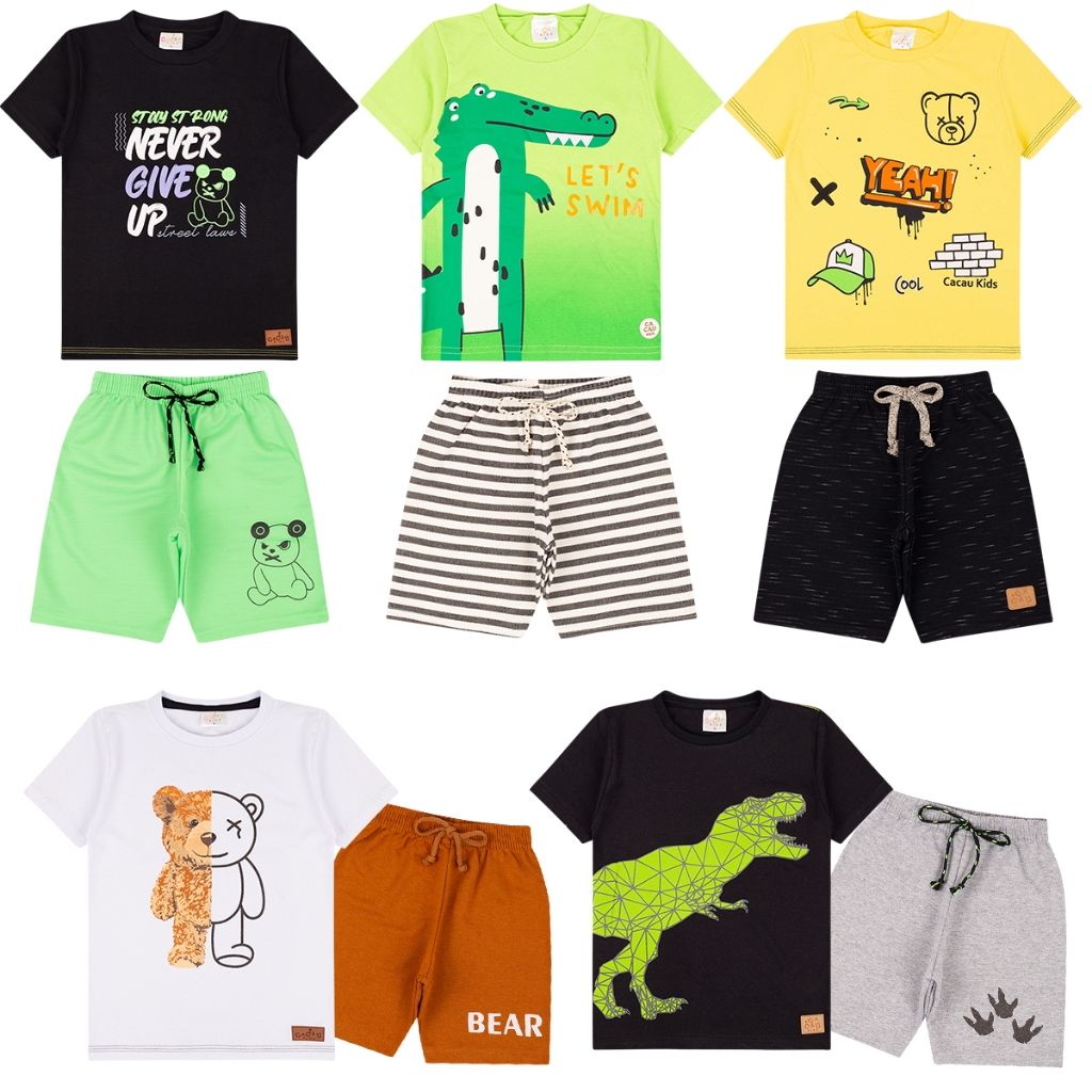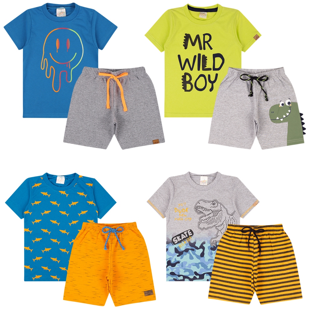 Kit conjuntos de Roupas Infantil Menino - Camisetas + Bermudas -escolha seu kit