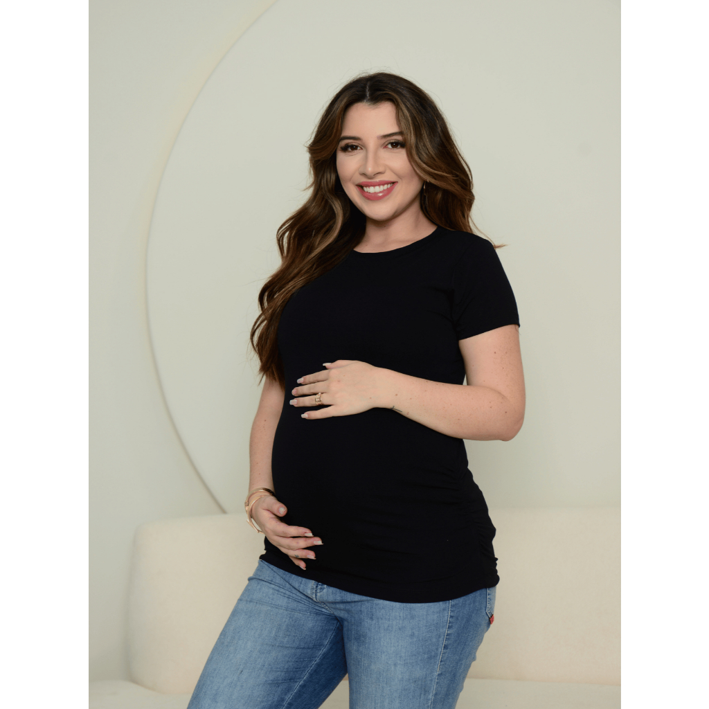 Blusa gestante elástico vai e vem zig zag se adapta ao corpo use durante toda a gestação blusinha grávida maternidade
