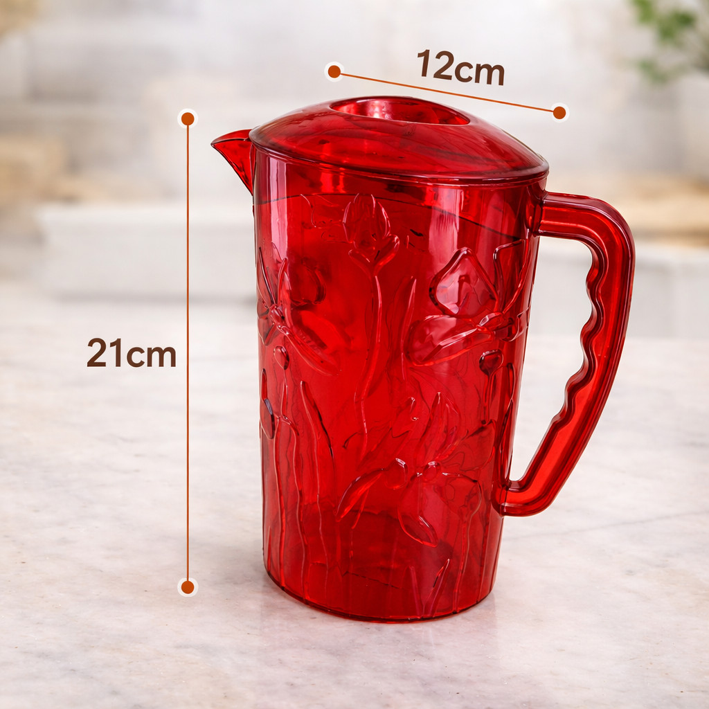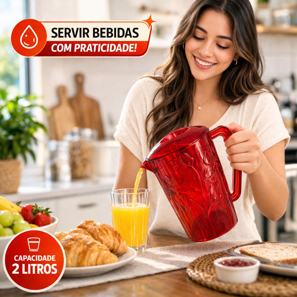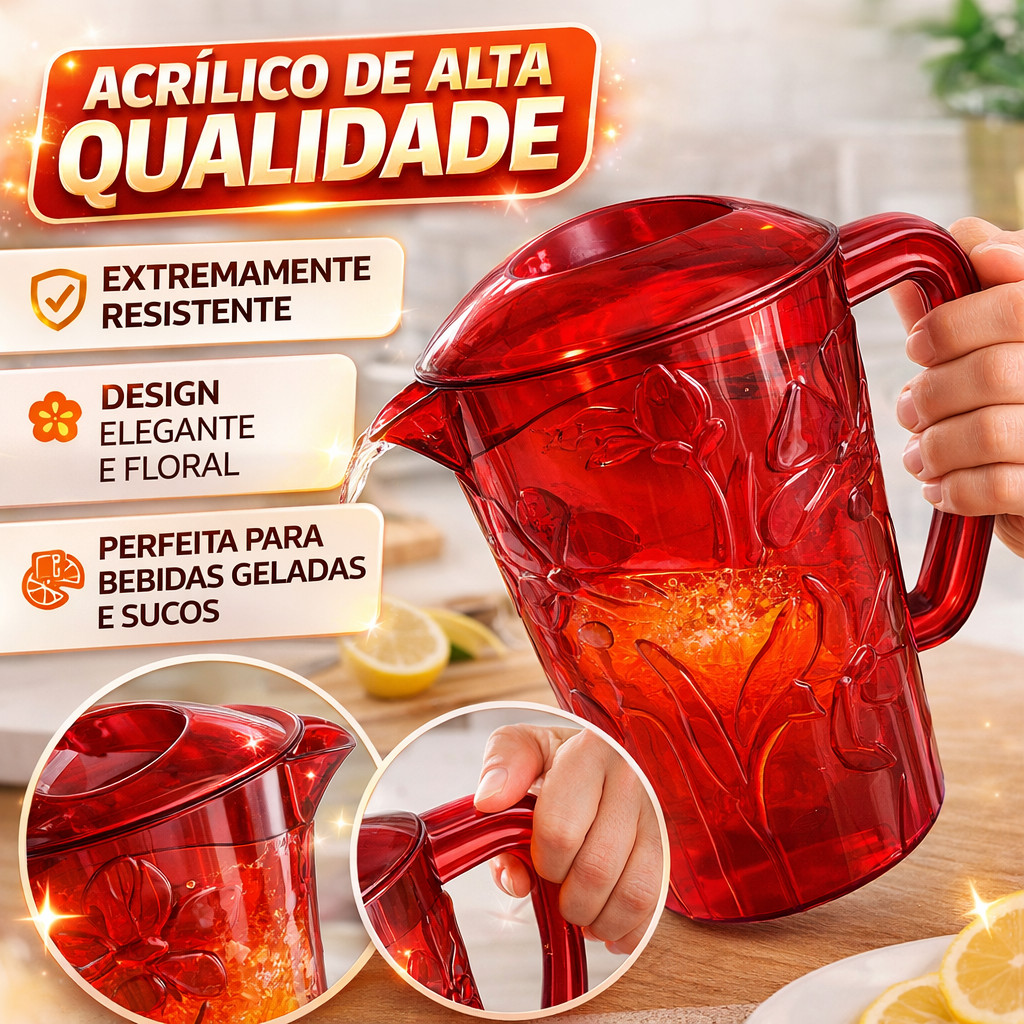 Jarra Acrílica 2L Transparente 3 Cores Tampa Prática Resistente Servir Suco Água Bebidas Cozinha