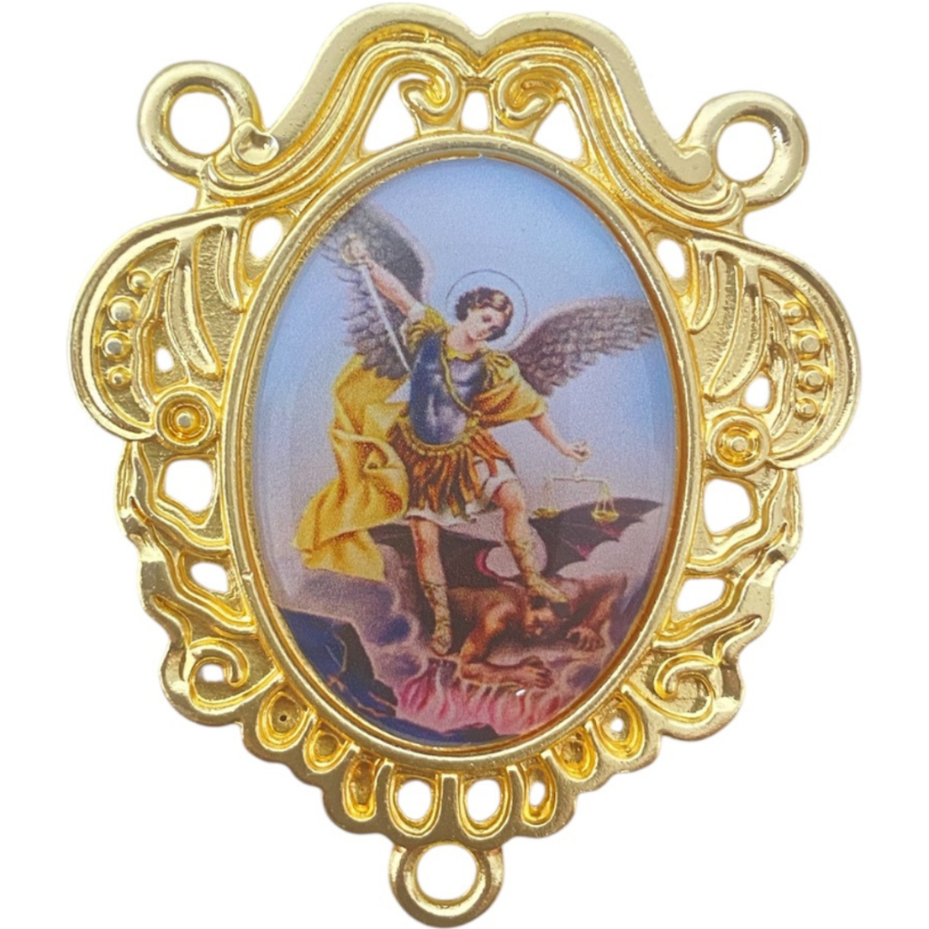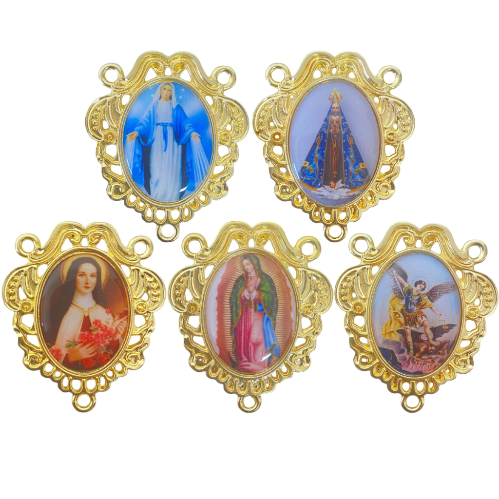 Entremeio Camafeu Com Imagem De Santo Para Fazer Terço Dourado Cataforético Nossa Senhora São Miguel