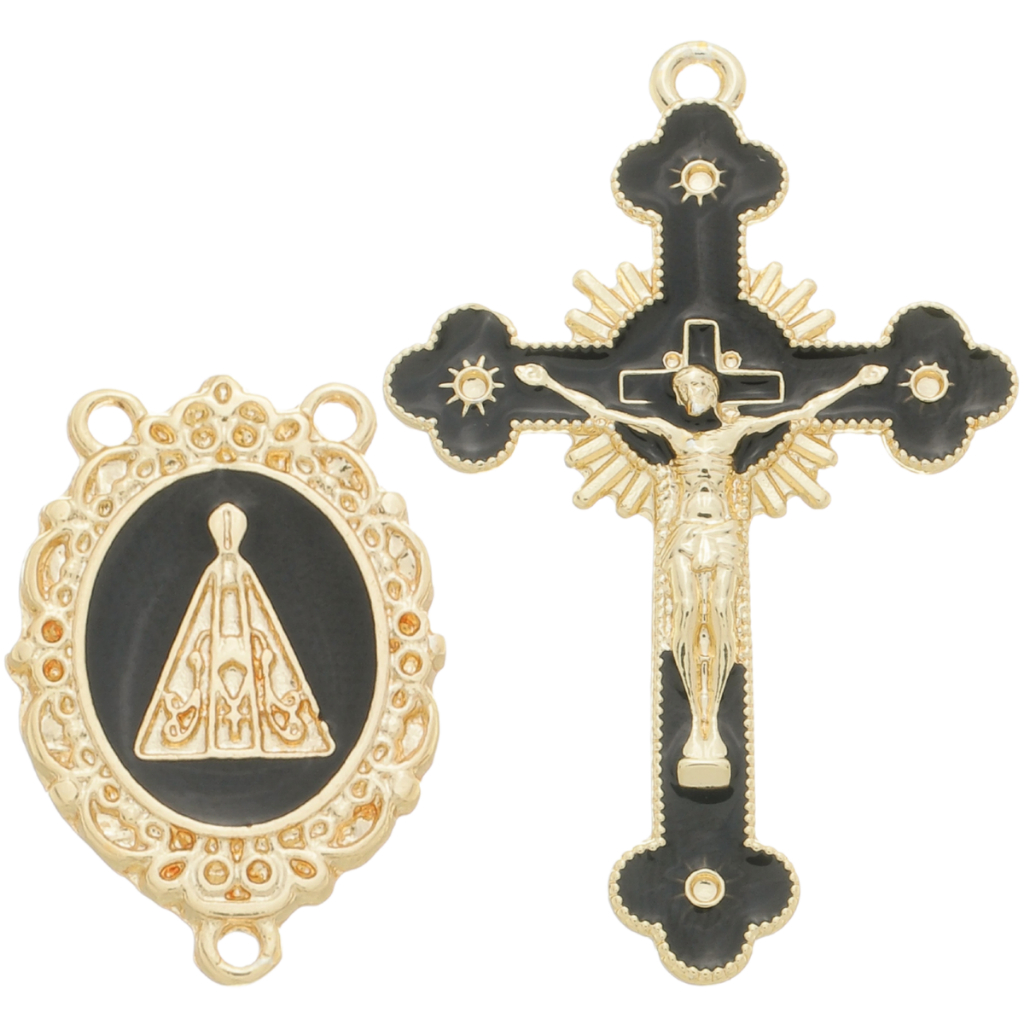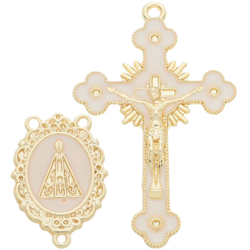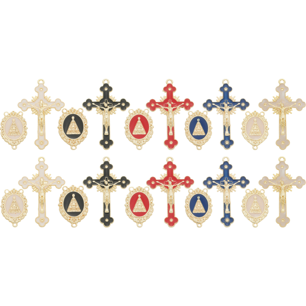 Kit 5 Pingente Cruz Jesus Resinado + 5 Entremeio Nossa Senhora Aparecida Para Fazer Terço Dourado
