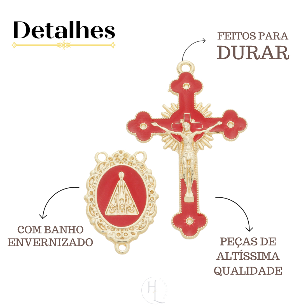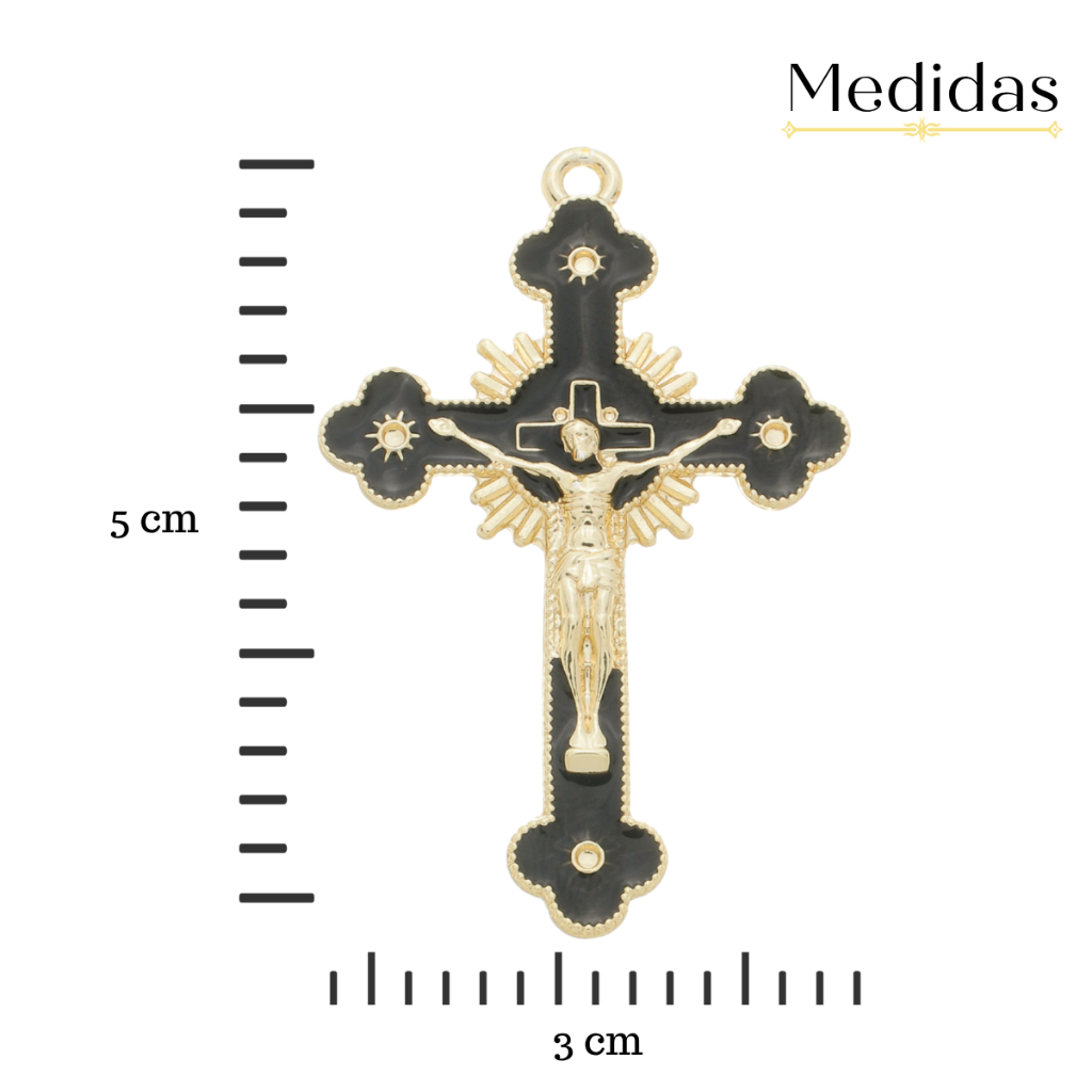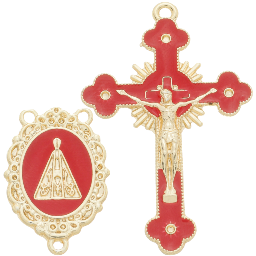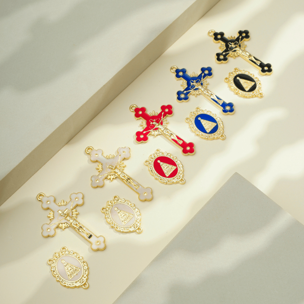 Kit 5 Pingente Cruz Jesus Resinado + 5 Entremeio Nossa Senhora Aparecida Para Fazer Terço Dourado