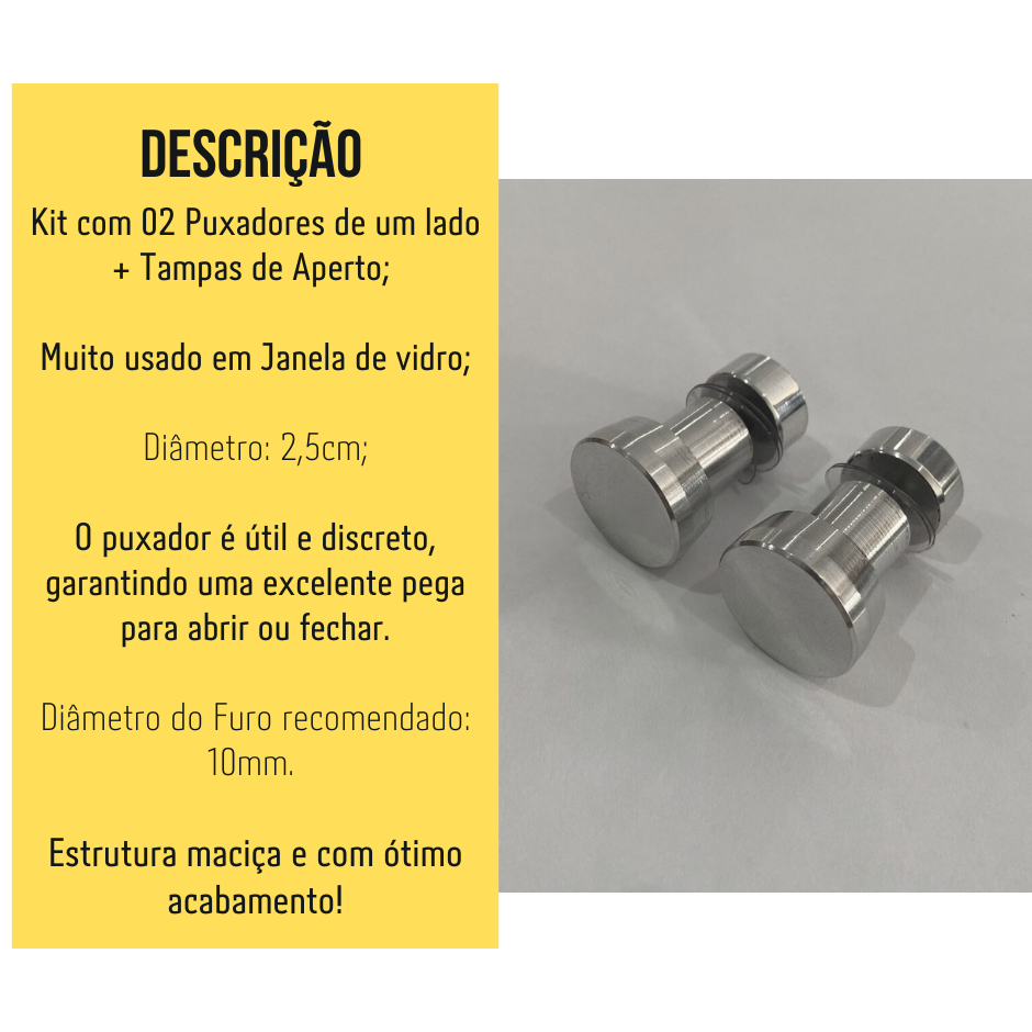Kit com 02 Puxadores de Alumínio Para Janela Box E Porta De Vidro Blindex 1629