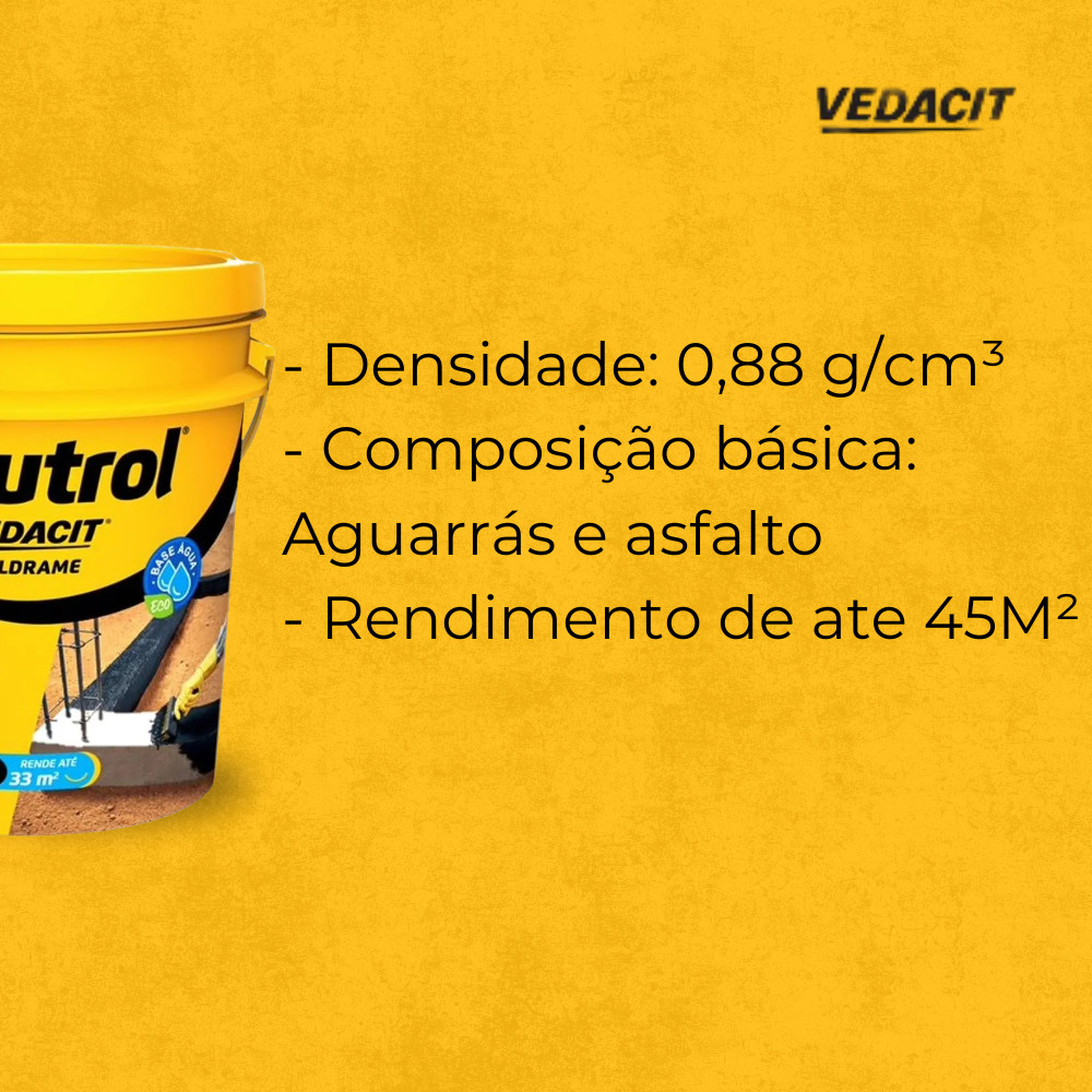 Impermeabilizante Baldrame Pintura Asfáltica Neutrol Vedacit 18L Concreto Secagem Rápida Argamassa