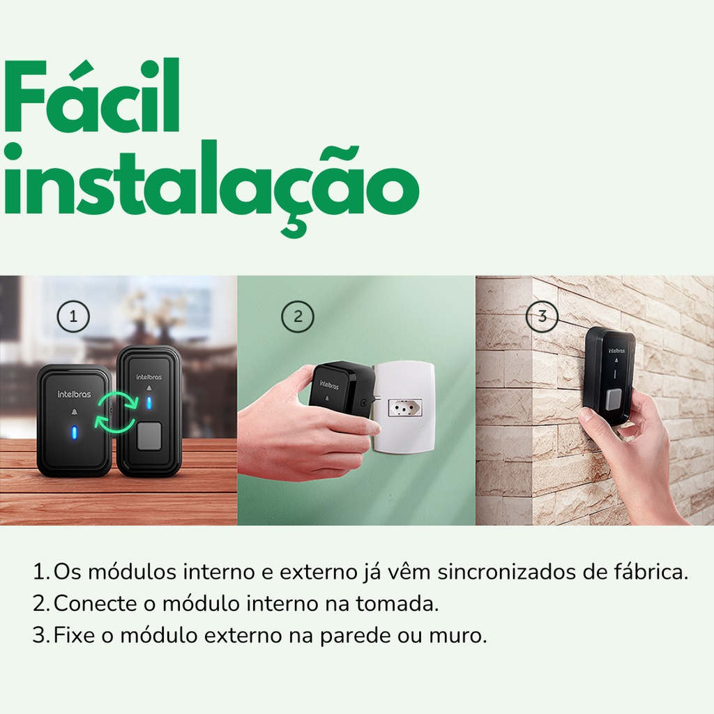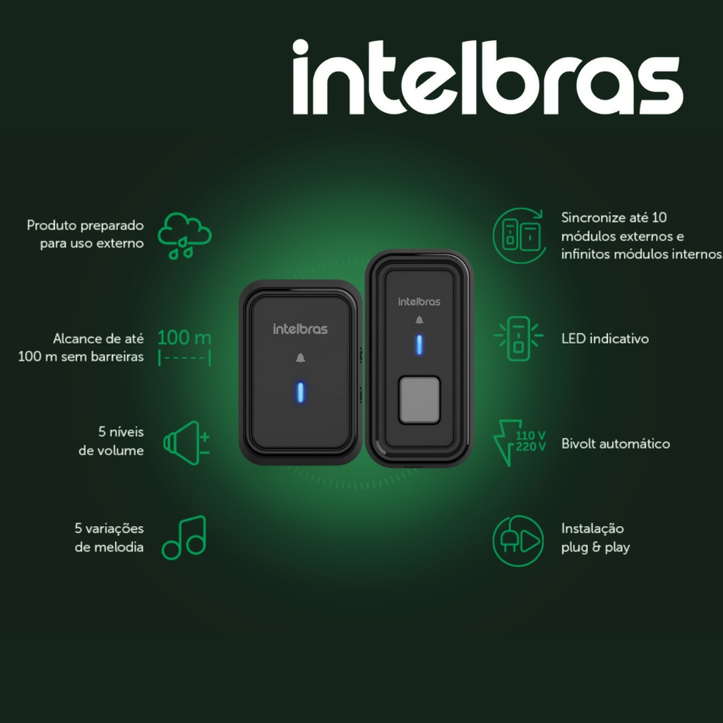 Campainha Eletrônica Sem Fio CIB 101 Intelbras Preta Bateria Alta Performance Bivolt Moderna
