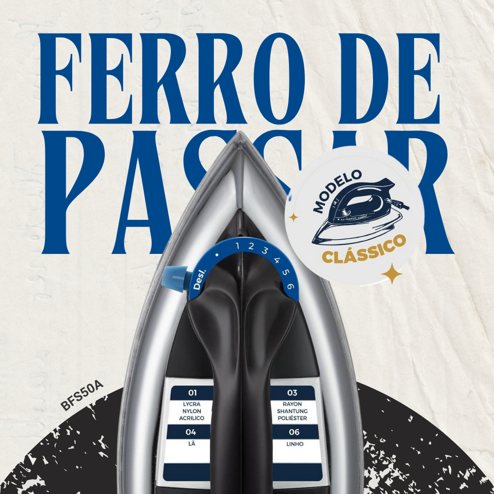 Ferro de Passar Roupa 127V Britânia BFS50A Seco Base Alumínio Antiaderente Preto Inox 6 Temperatura Botão 220°C Clássico