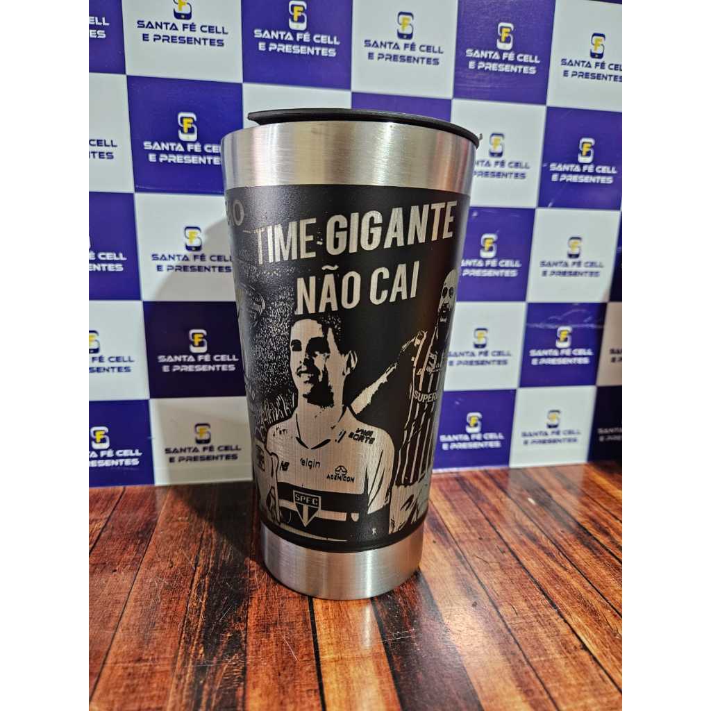 Copo Térmico 473ml São Paulo jog com Tampa e Abridor Personalizado Gravação a Laser 360° Inox